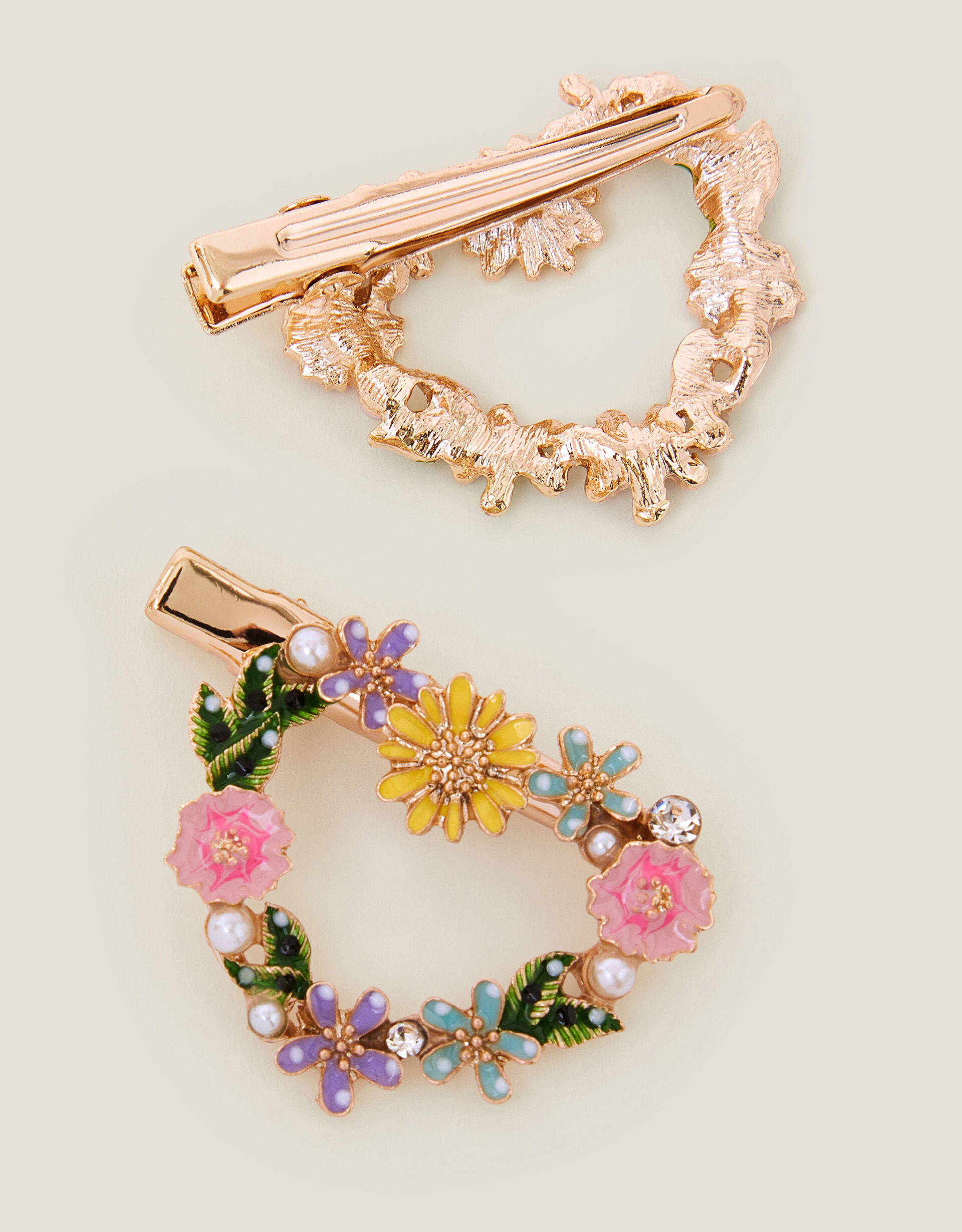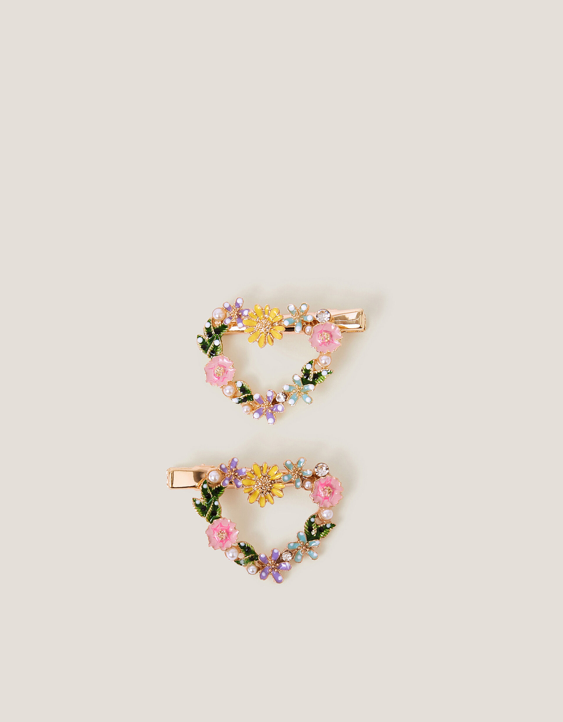 Very fairy princess. Showcasing a love heart design embellished with colourful enamel flowers, dazzling diamantes and pearly beads, these hair clips add cute, vibrant touches to their hairstyles. Two included.