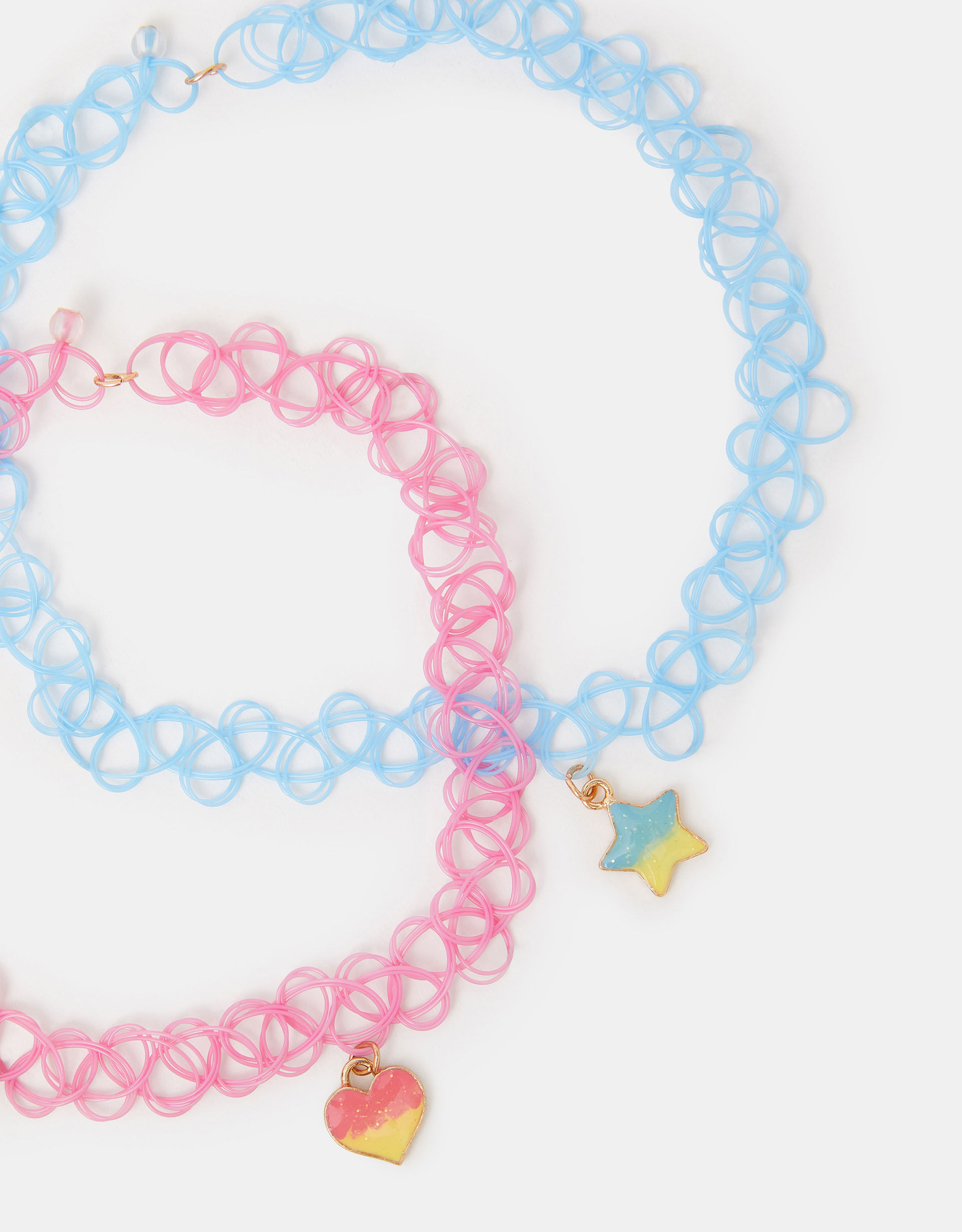 Besties for life! Let them show their love and appreciation with these cute chokers. Featuring two stretchy chokers with ombre heart and star pendants. Two included.