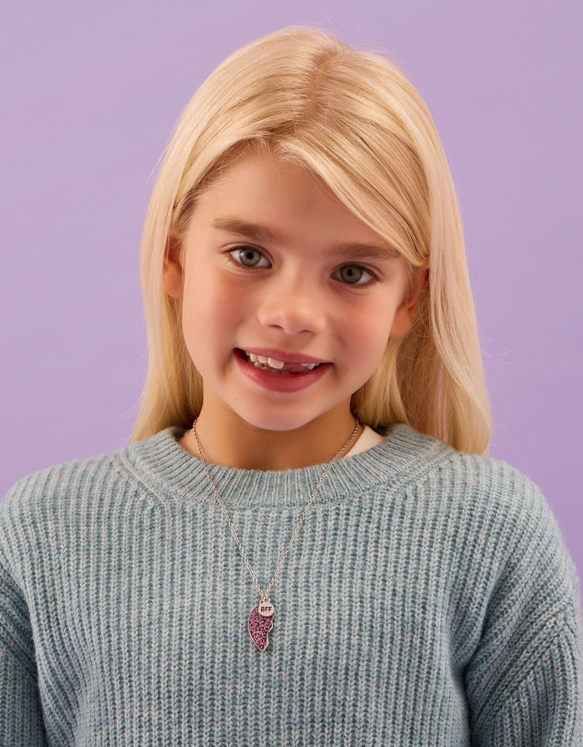 Wanna be BFF’s forever? A cute gift for little ones to share with their bestie, these friendship necklaces are made with silver-tone chains and leopard print pendants that slot together to make a heart. How cute! Warning! Choking Hazard—Small parts. Not suitable for children under 3 years old.