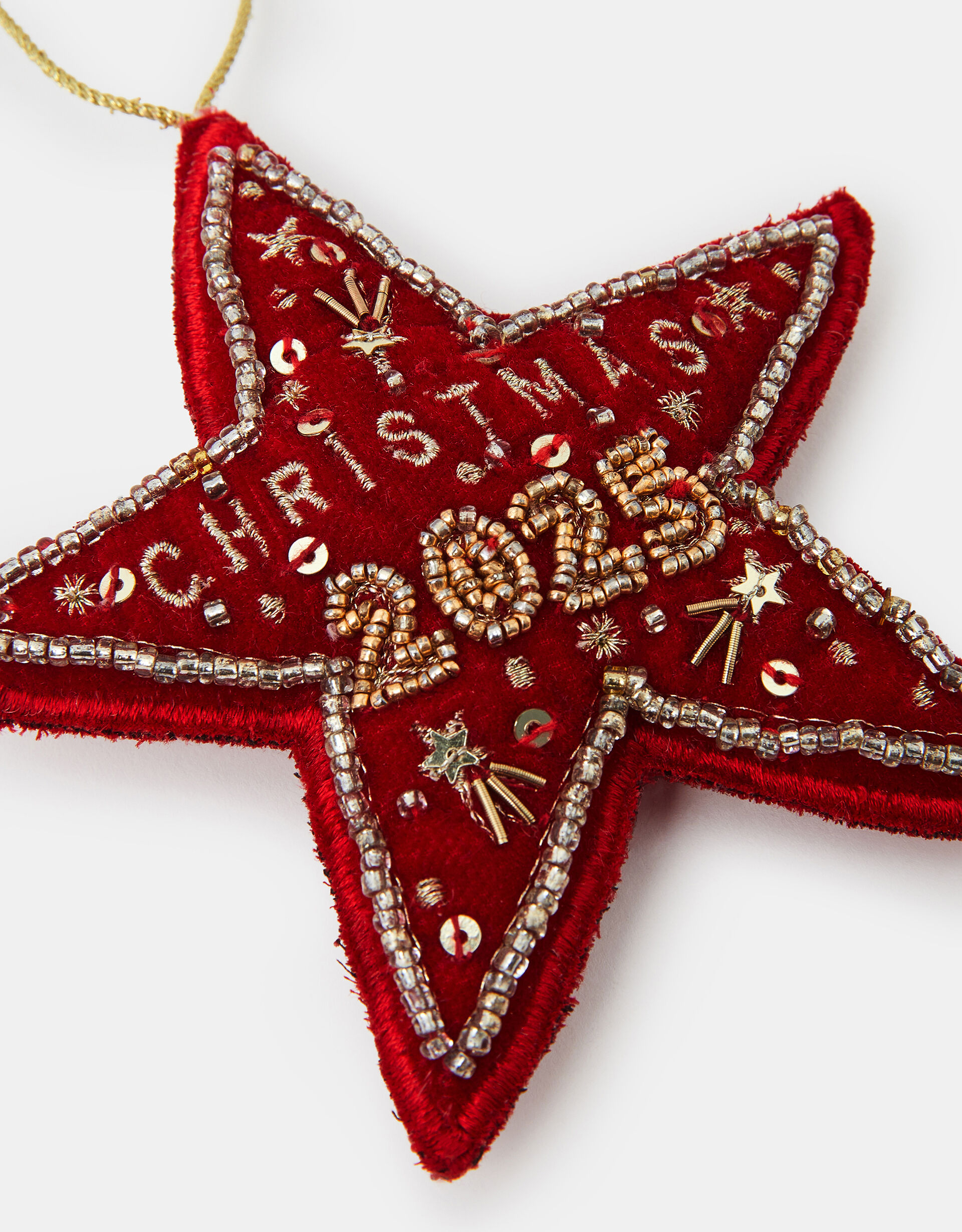 Has this year been extra special? Commemorate 2025 with this red star Christmas tree decoration, embellished with gold beads, shooting stars and sparkly sequins.