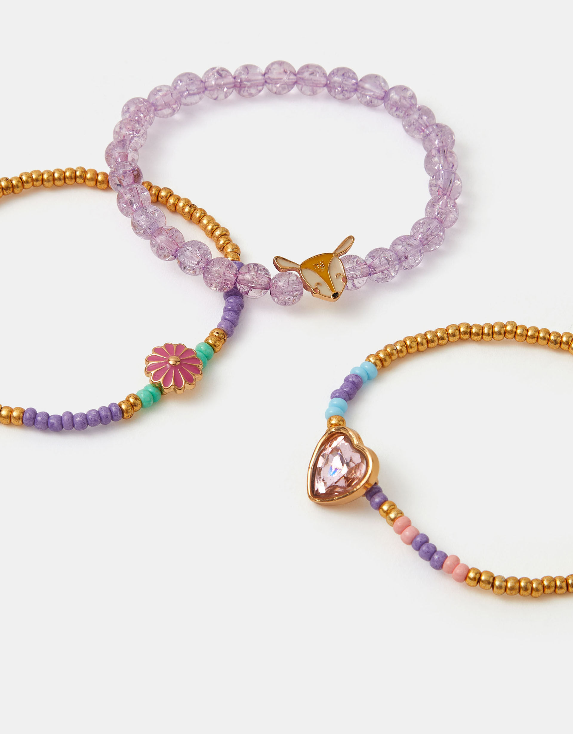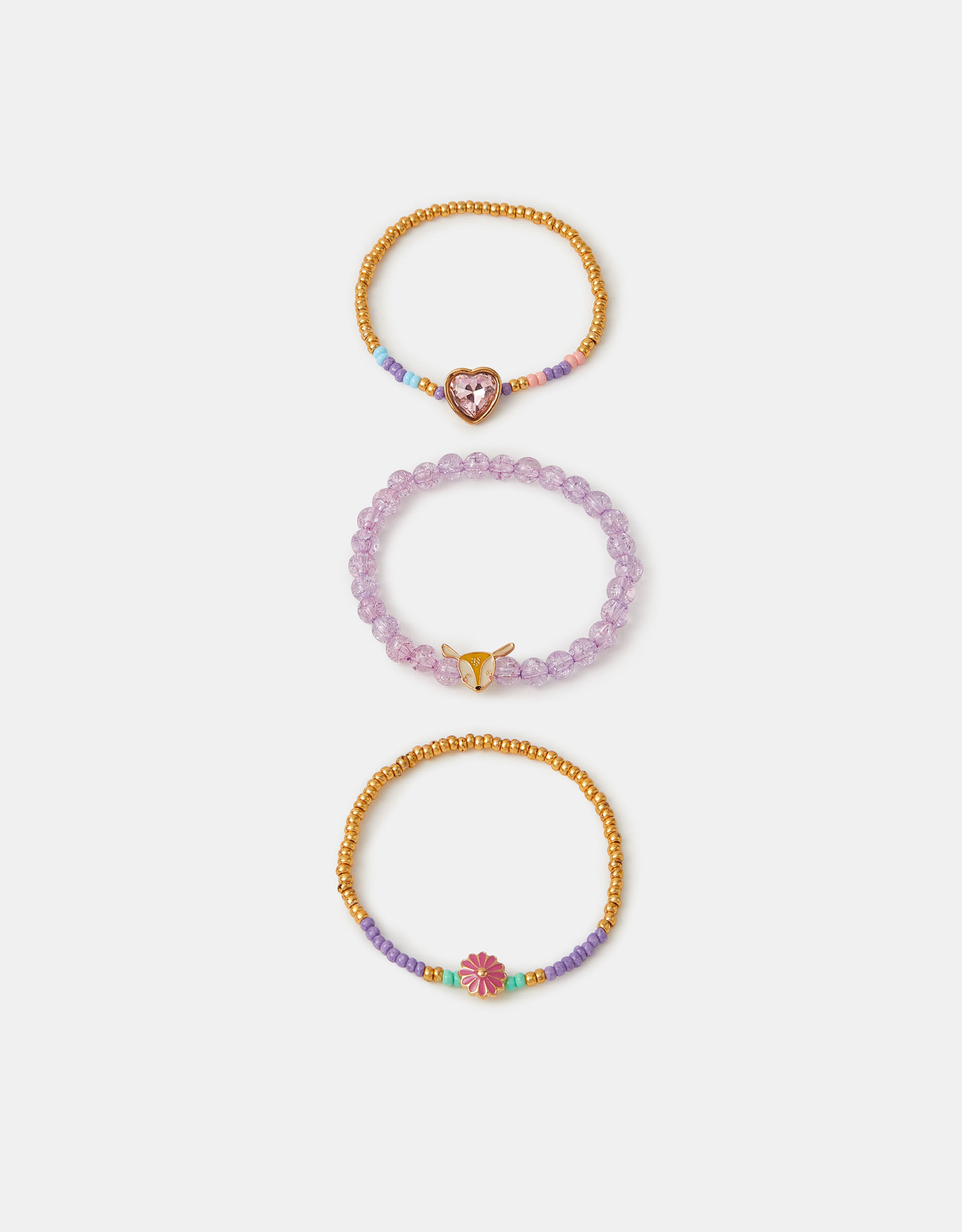 Featuring colourful beads and a mix of heart, flower and deer charms, this stretch bracelet set is perfect for stacking or sharing amongst their BFF’s. Three included. Warning! Choking Hazard—Small parts. Not suitable for children under 3 years old.