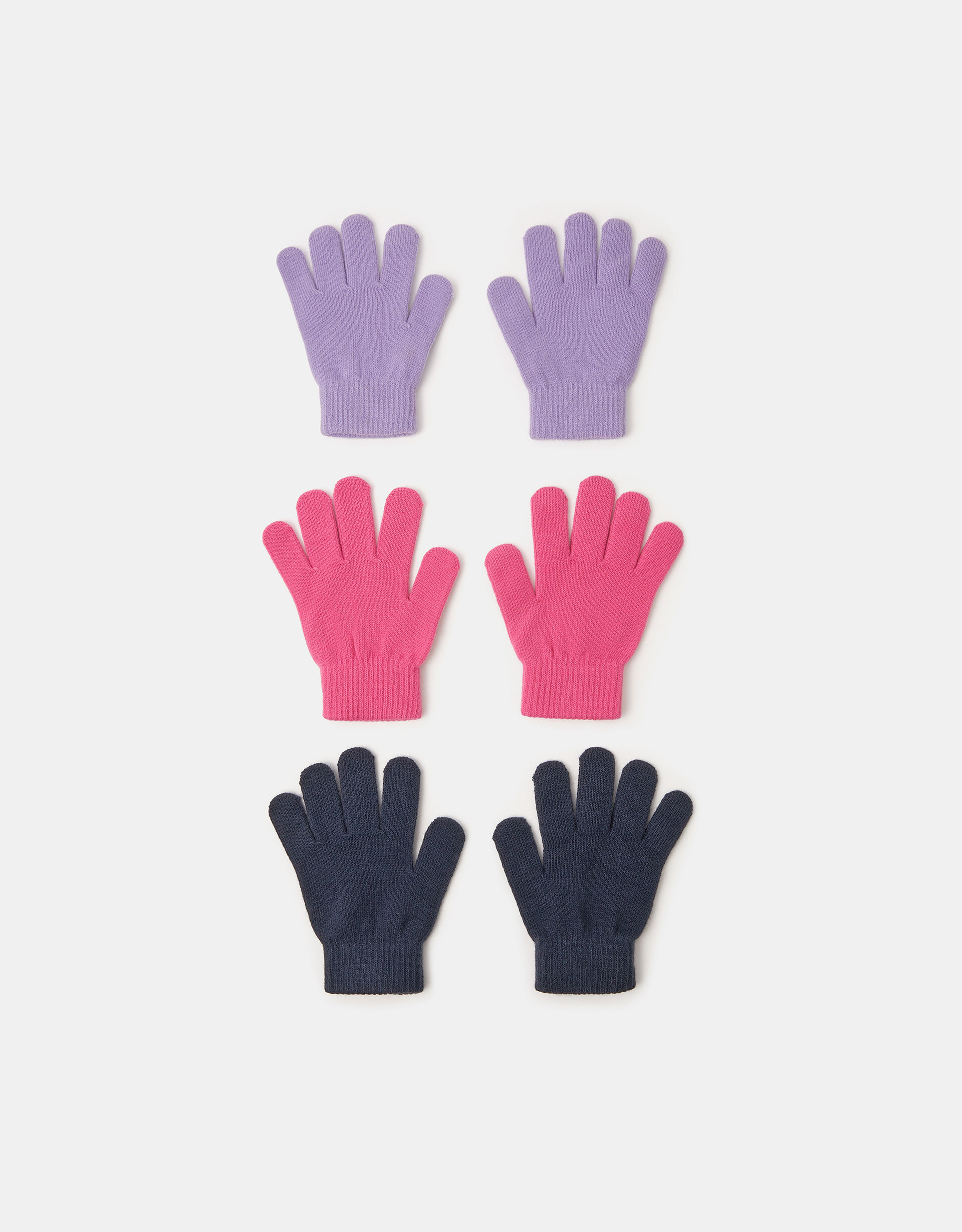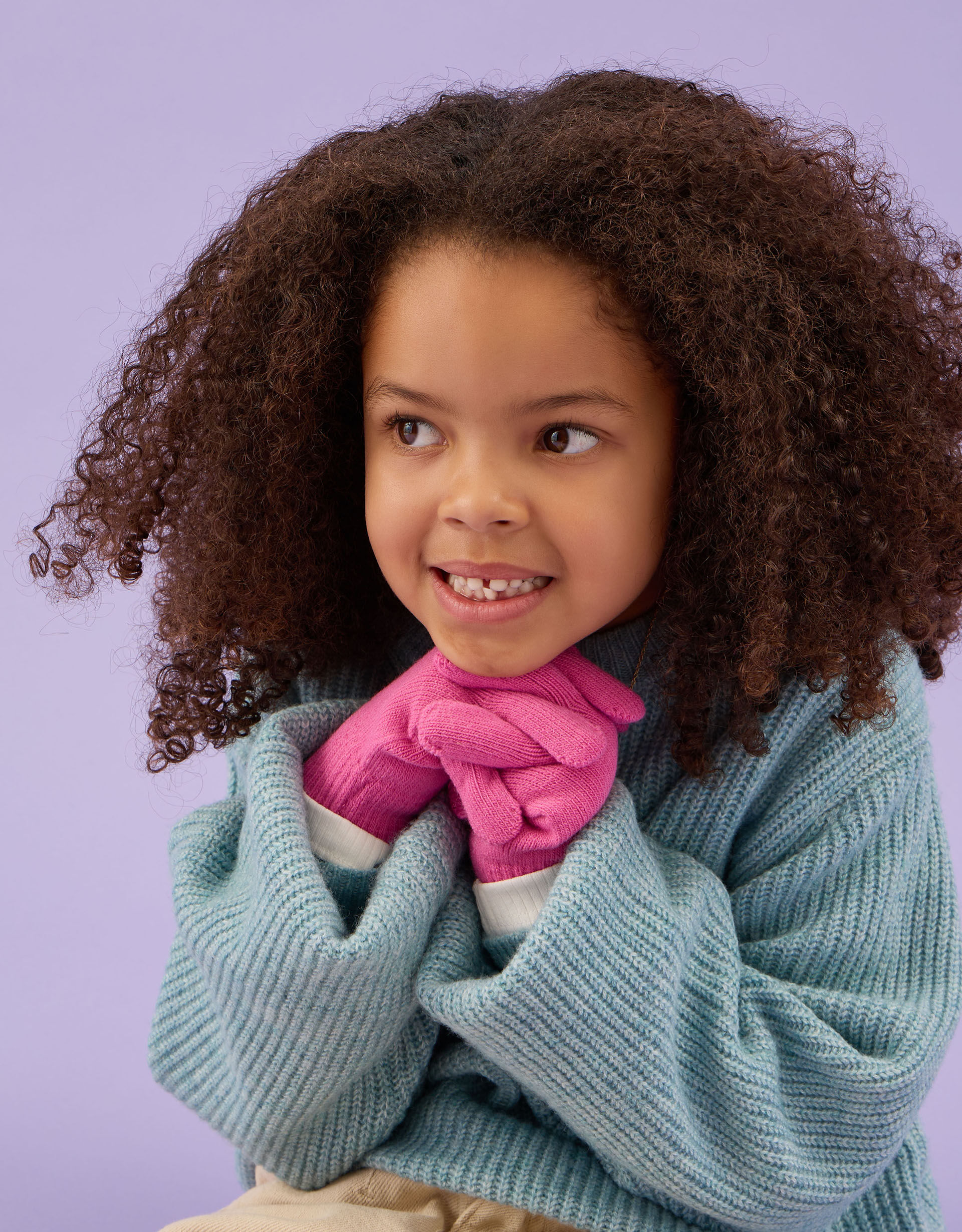 Knitted in lilac, pink and grey, this trio of comfy gloves are sure to keep their little fingers warm all winter long. Let them pick and choose the colour, depending on their mood (and outfit). Three pairs included. Multi