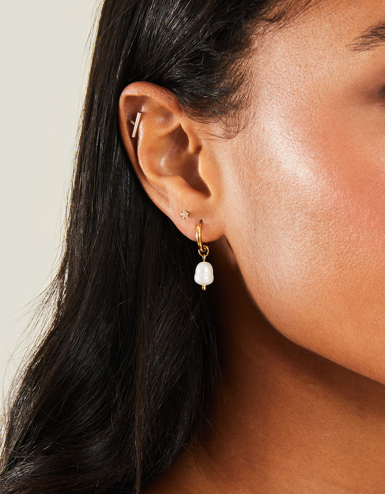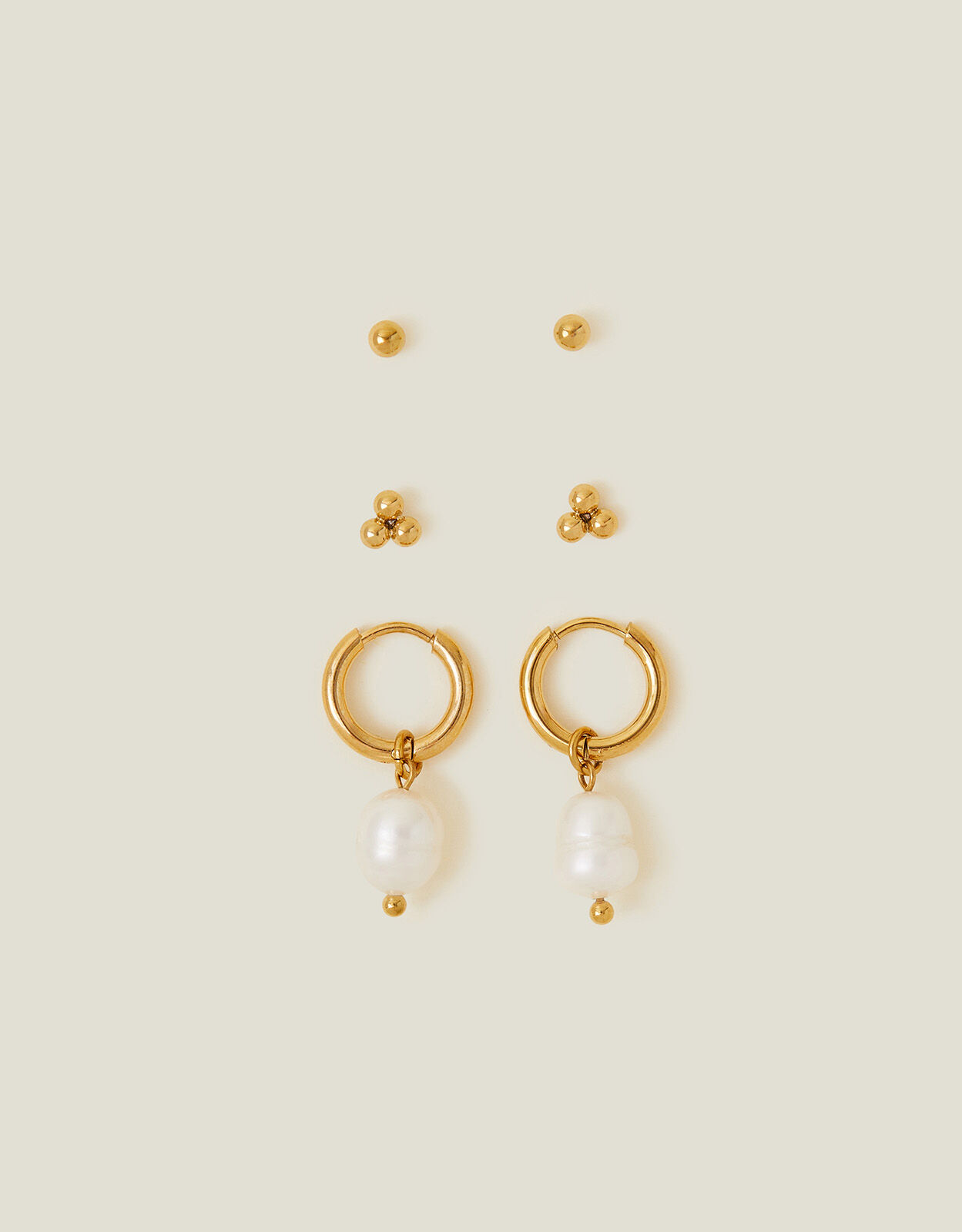 A pair for any occasion, this super-handy earring set is designed with a simple ball stud design and pearl charm huggie hoops. Non-refundable. Introducing our most-durable collection yet. Crafted in stainless steel, this style is coated in PVD for a longer-lasting, water-resistant and low-maintenance design.