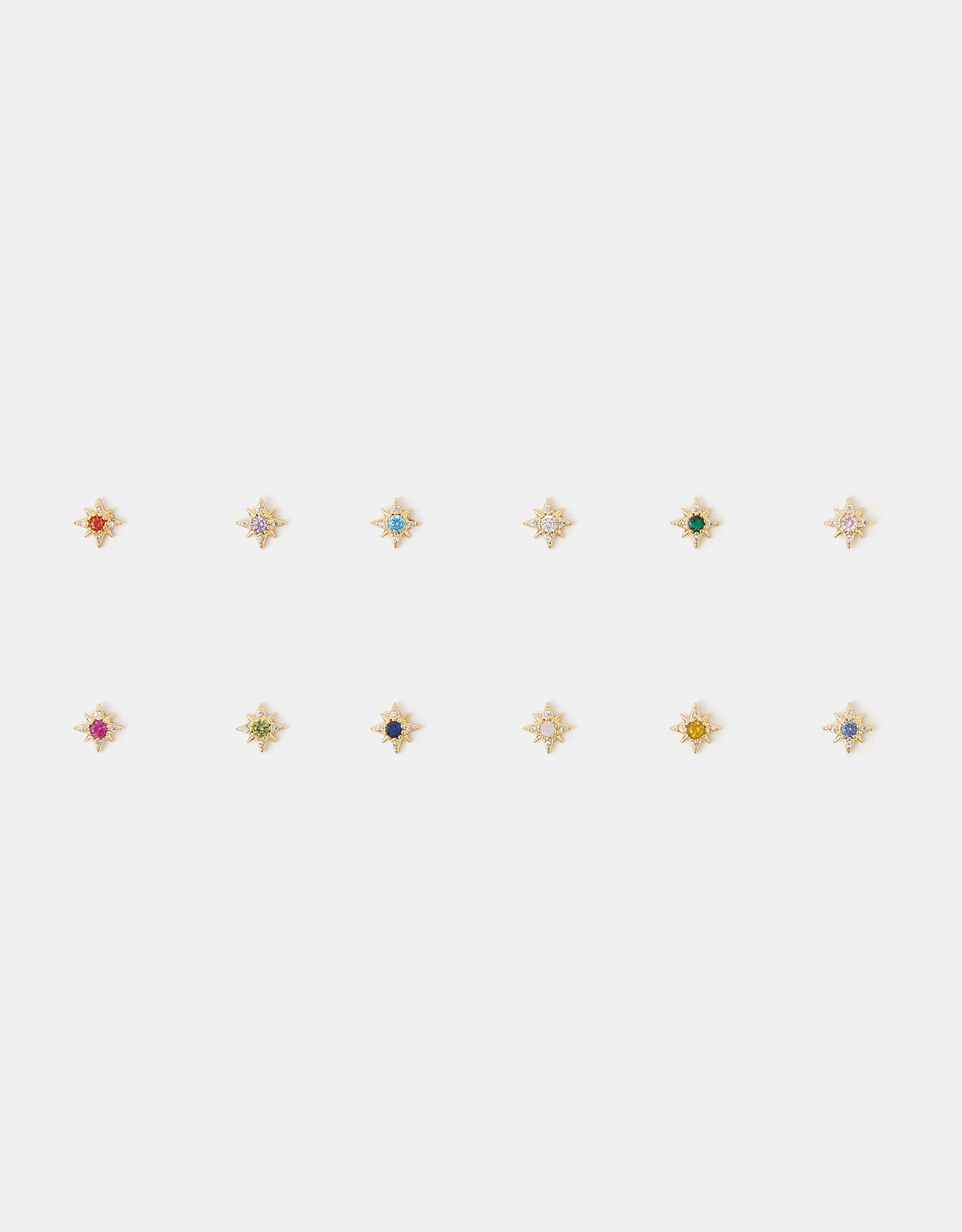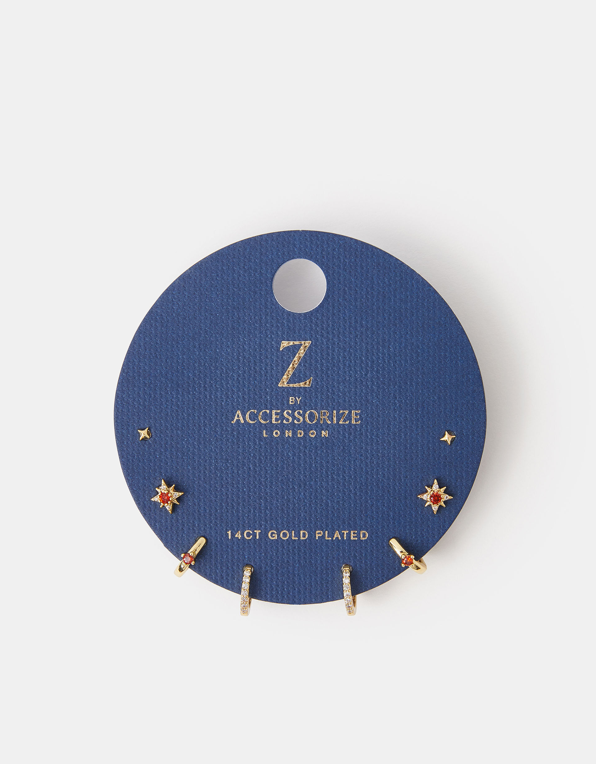 Part of the Z by Accessorize collection. Curate a personalised constellation in your ear-stack with this selection of earrings. The set includes two pairs of celestial-inspired studs and two pairs of hoops, all embellished with diamantés and birthstones of your choice. Whatever the occasion, they’re a gift anyone will adore. Plated in 14 carat gold for a luxe, longer-lasting finish. Non-refundable. Gold