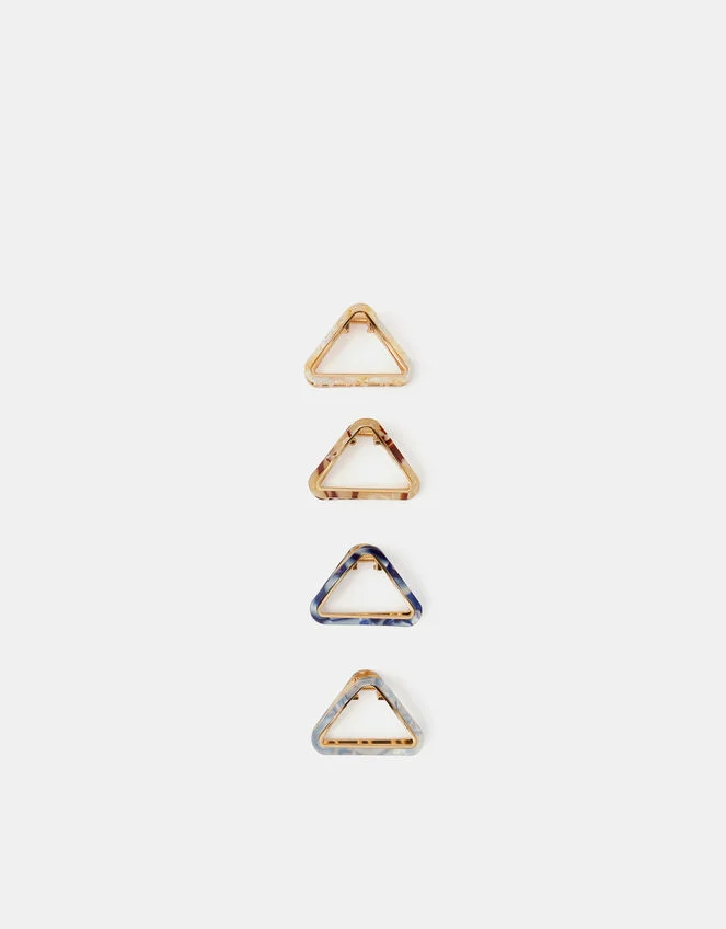 Add new dimensions to your updos with these claw clips. Made from gold-tone metal, they’re designed with cut-out triangular shapes and different marbled resin finishes. Four included.