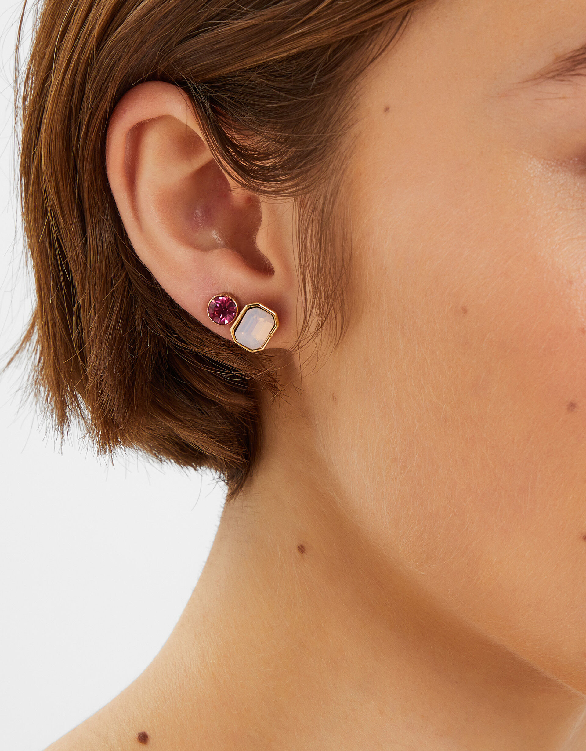 Very Glinda. A wicked addition to your jewellery box, these studs showcase sparkling gemstones in different shapes and tones of pink. Five pairs of earrings included. Non-refundable.