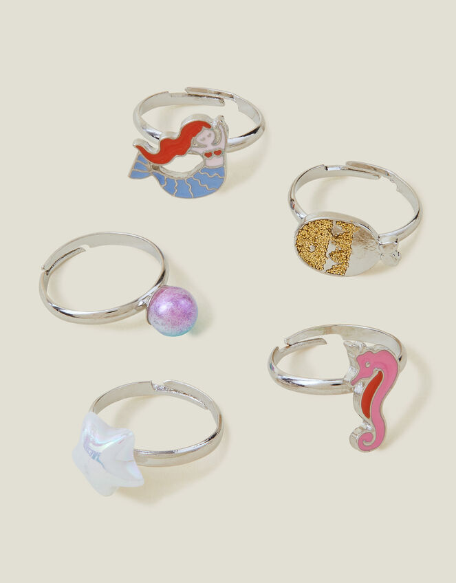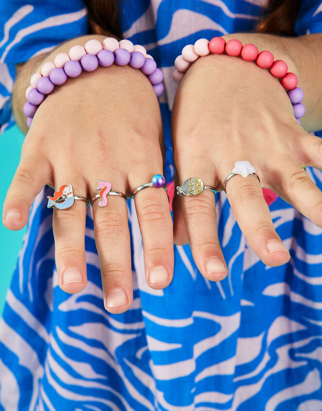 Party under the sea? We’ve got them covered with this ring set. Comprised of five uniquely designed rings, this enchanting set features mermaids, pearls, fish, and stars!