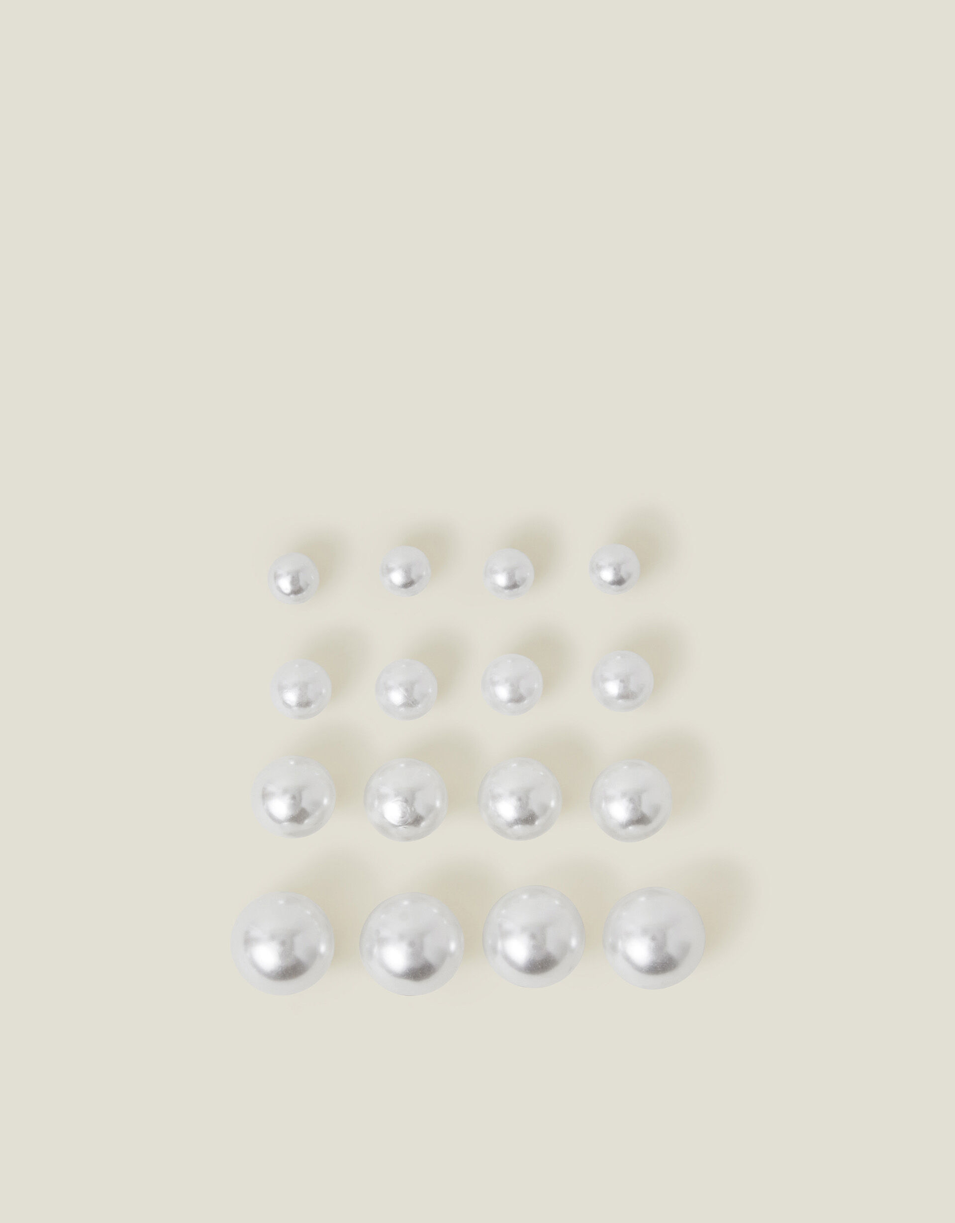 No jewellery collection is complete without pearl earrings. Featuring eight pairs of faux peal studs, this set is designed in graduating sizes. Non-refundable.