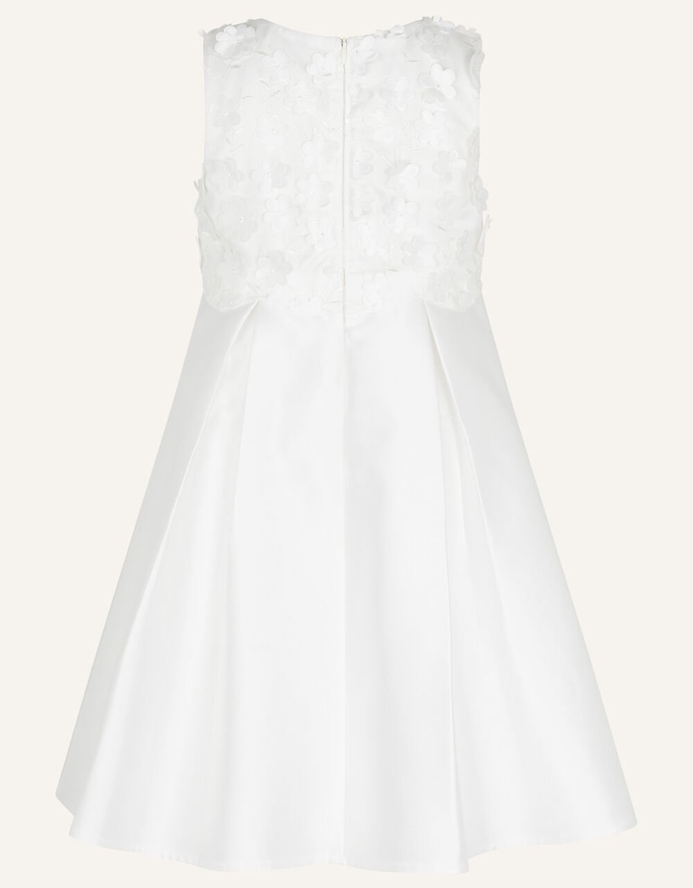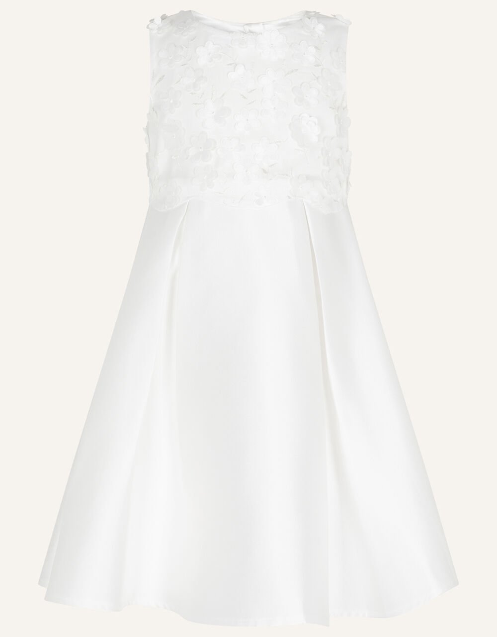 Perfect for weddings and christenings, our Annabelle dress is created in duchess twill with floral embroidery and 3D appliques. The skirt is pleated for a flare-out shape and the back fastens with a concealed zip. Ivory