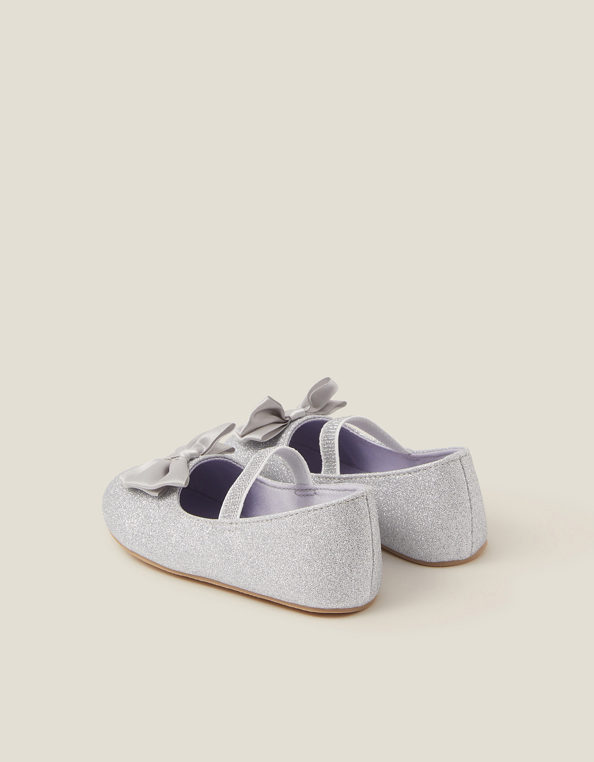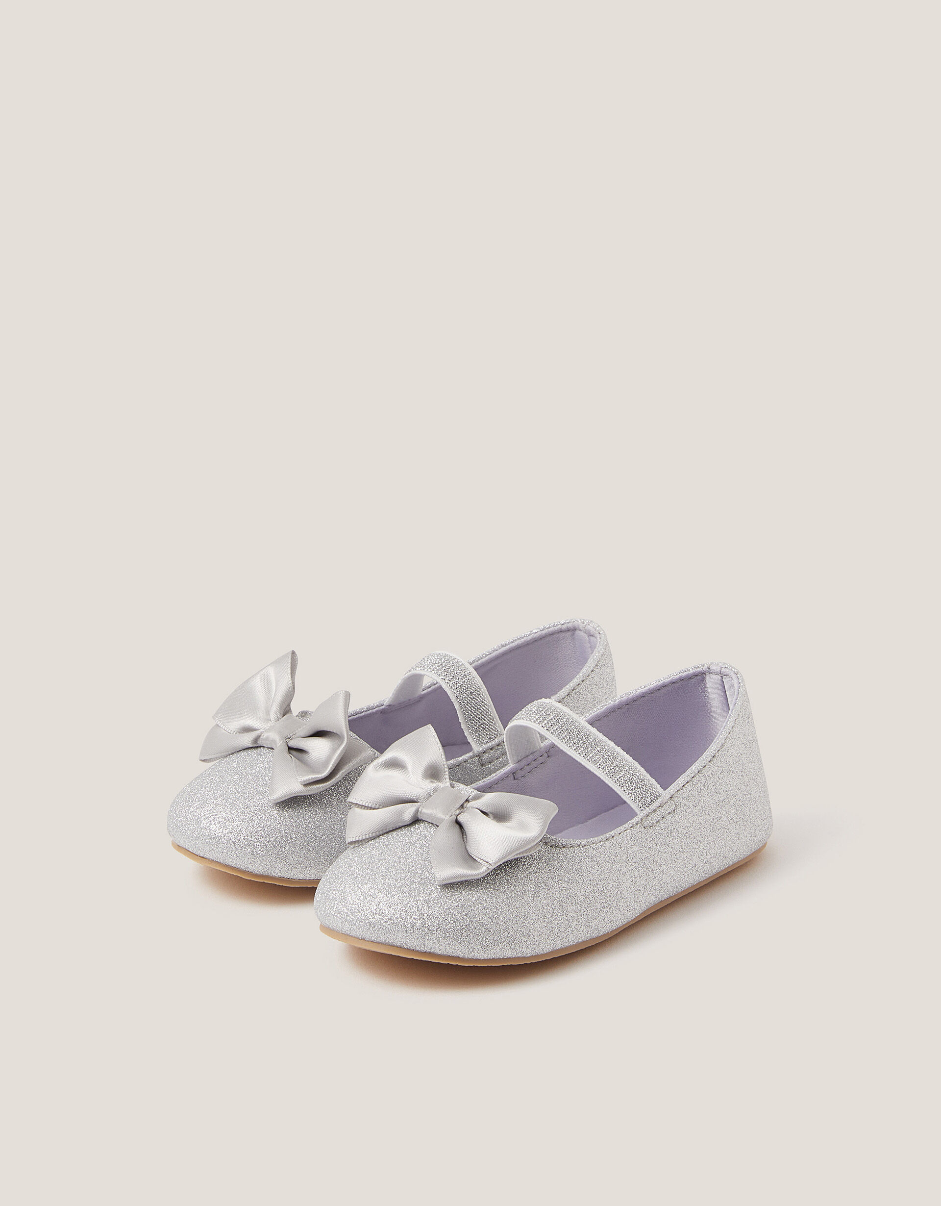 Dress them like their favourite dolly. Sparkling with every step (or crawl), these walkers are doused in glitter with a sweet satin bow to the front. Finished with an elastic strap to keep their wriggly toes in place. Silver