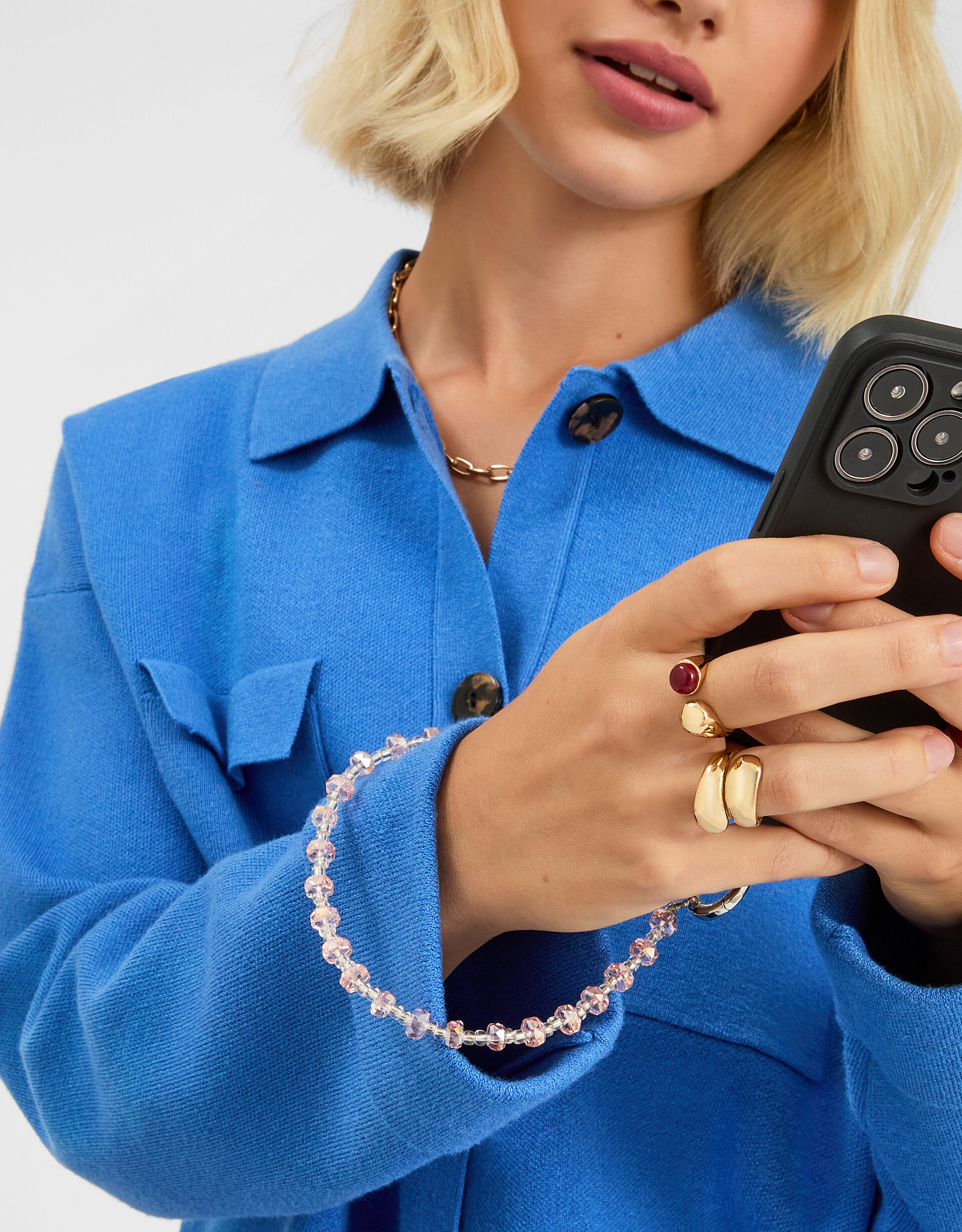 Strung with a mix of beads in pastel hues, this wrist strap keeps your phone safe and secure (in style) whilst texting or scrolling on the go. Finished with silver-tone hardware.