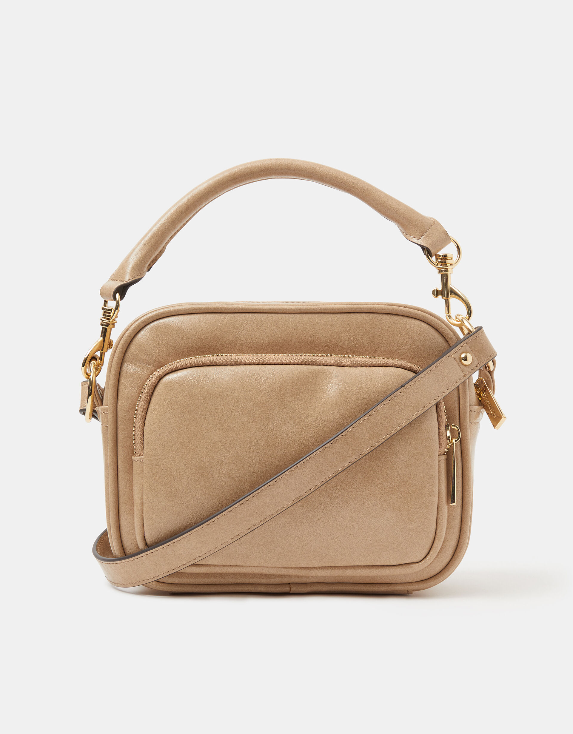 Designed in colourways that stand the test of time and go with everything in your wardrobe, this bag is a cute, compact option for everyday. Features a main zip compartment, front zip pocket, detachable top handle and adjustable crossbody strap. Nude