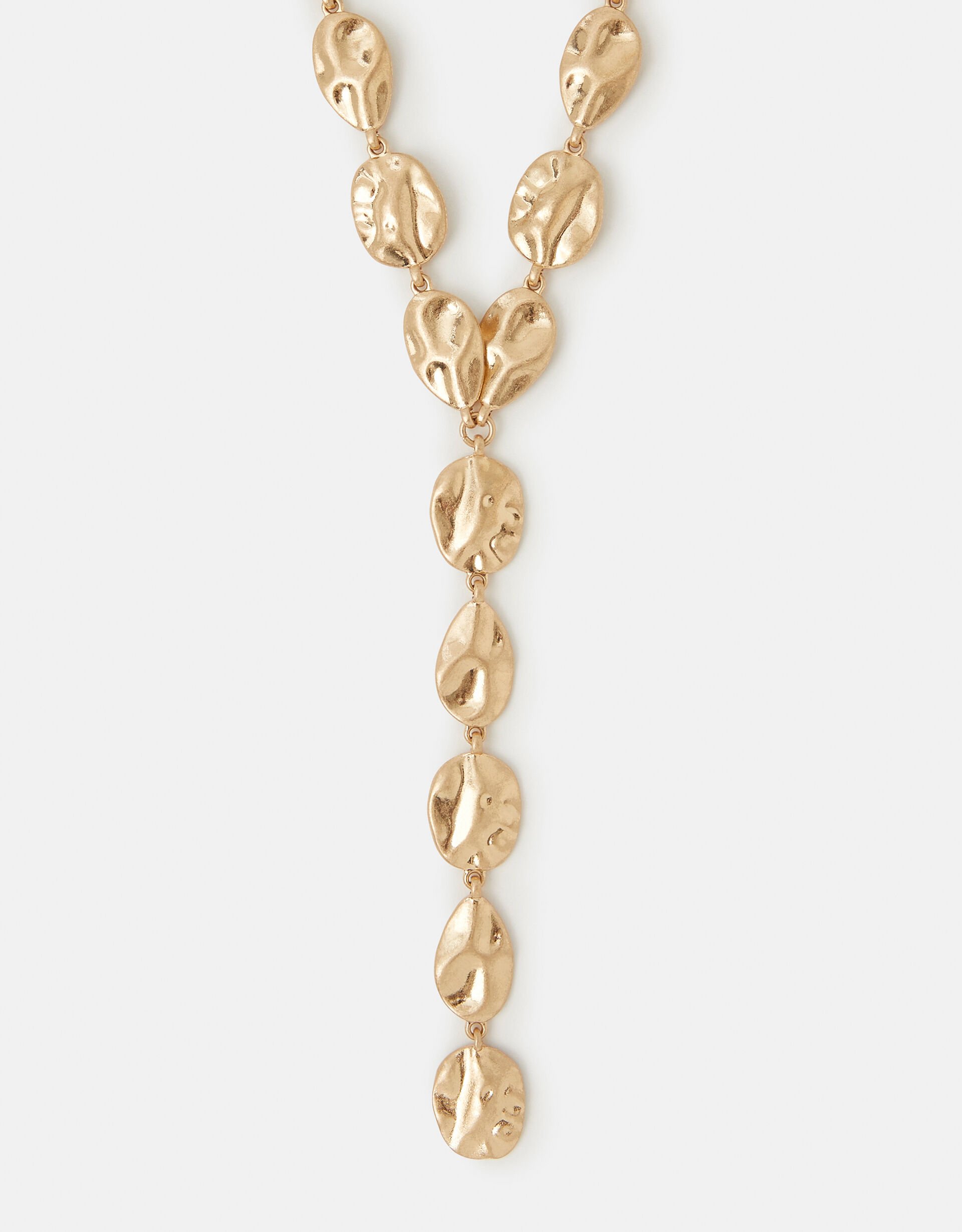 Accessorise all your V-neck tops and dresses with this gorgeous lariat necklace. Dipped in a golden tone, it showcases sculptural designs reminiscent of pebbles. Fastens with a lobster clasp and extender.