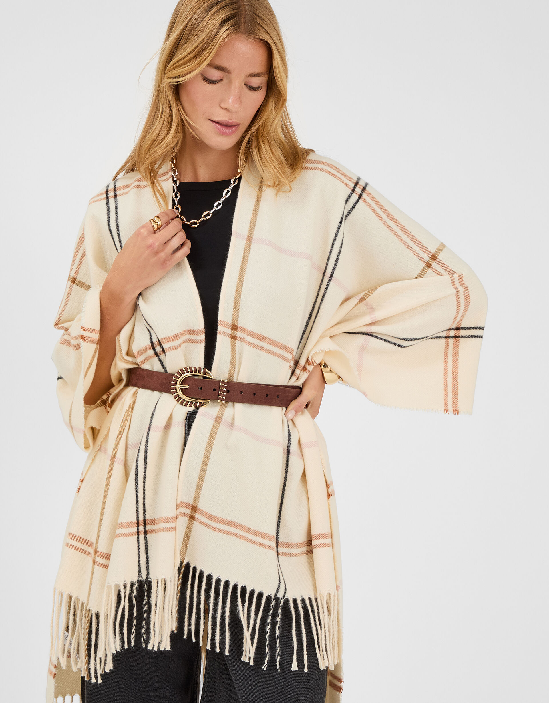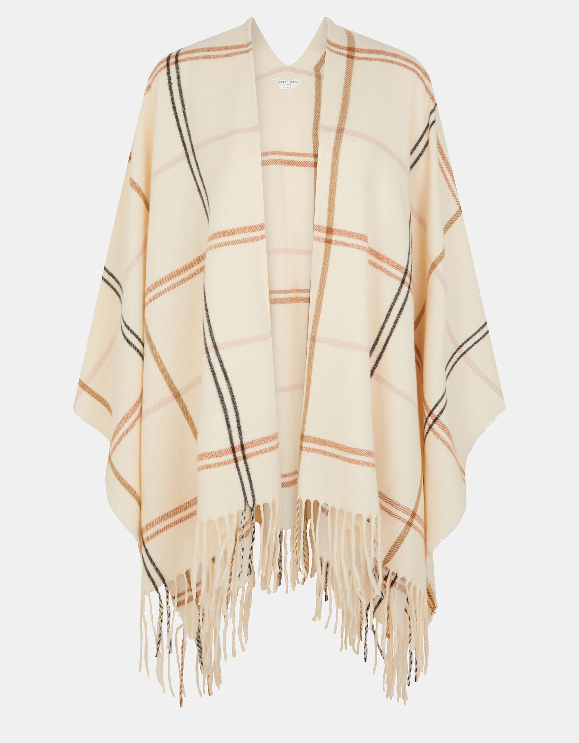 Stay cosy in this super-soft poncho. Featuring a classic check print, it’s perfect for layering in all-season weather. Finished with fringe trims.