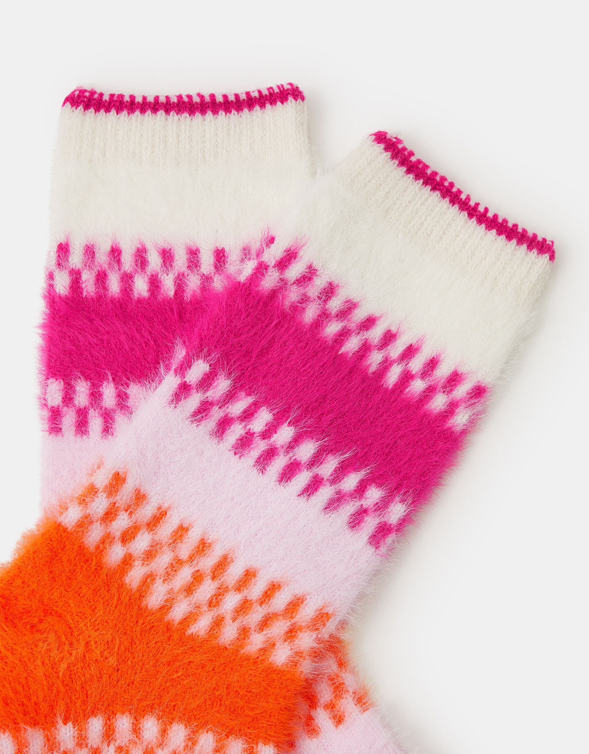 So cosy you won’t want to take them off! Spun in a super-soft blend, these socks boast a vibrant checkerboard and stripe design. Finished with a ribbed trim.