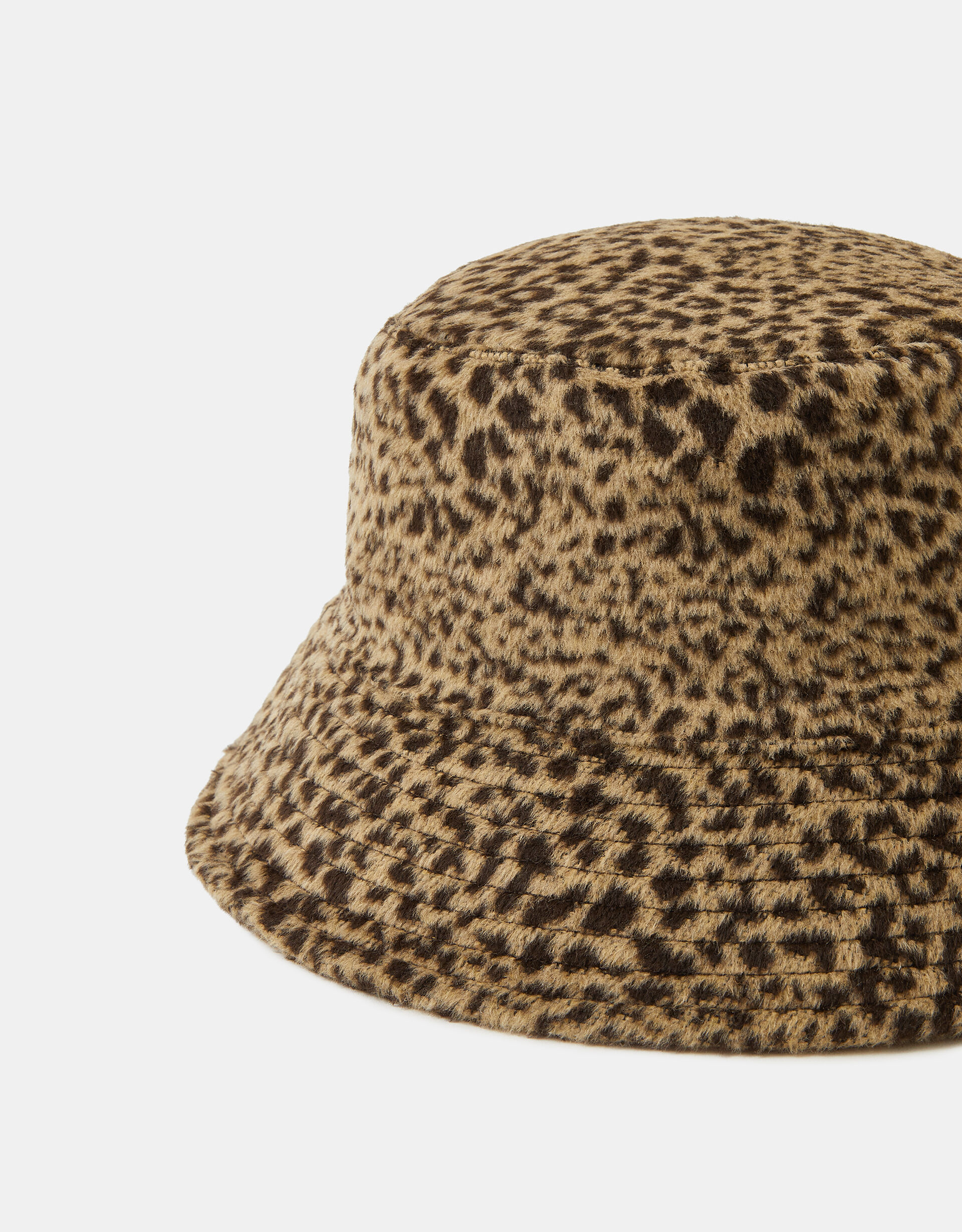 For the wild ones. Guaranteed to add buckets of fun to your ‘fits, this hat is doused in cheetah print with a textured finish. How will you style it?