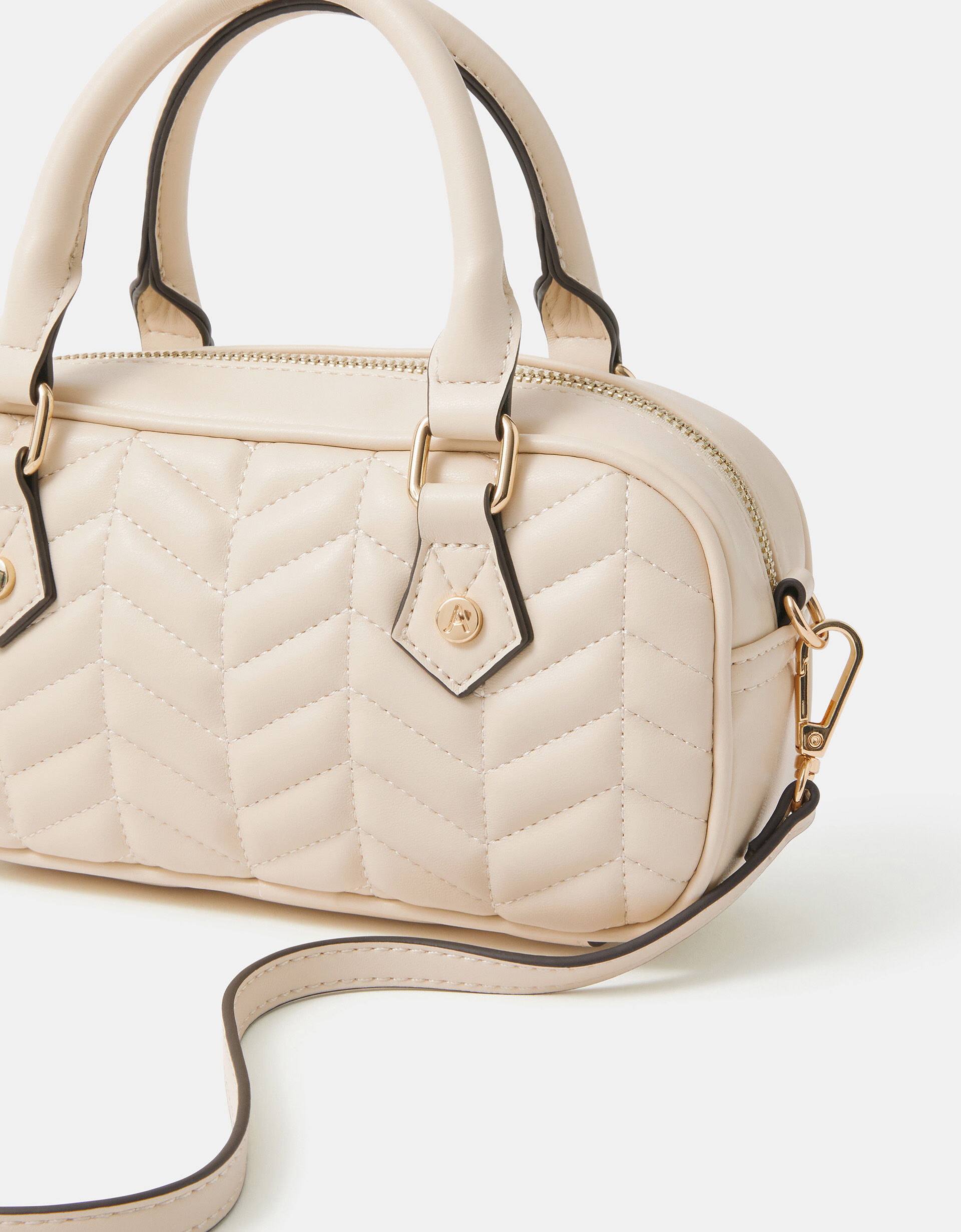 The perfect plus-one for… well, anything! Cute and compact, this mini handbag is stitched with a quilted finish and features a main zip compartment, inner zip pocket and optional crossbody strap for hands-free styling. Cream