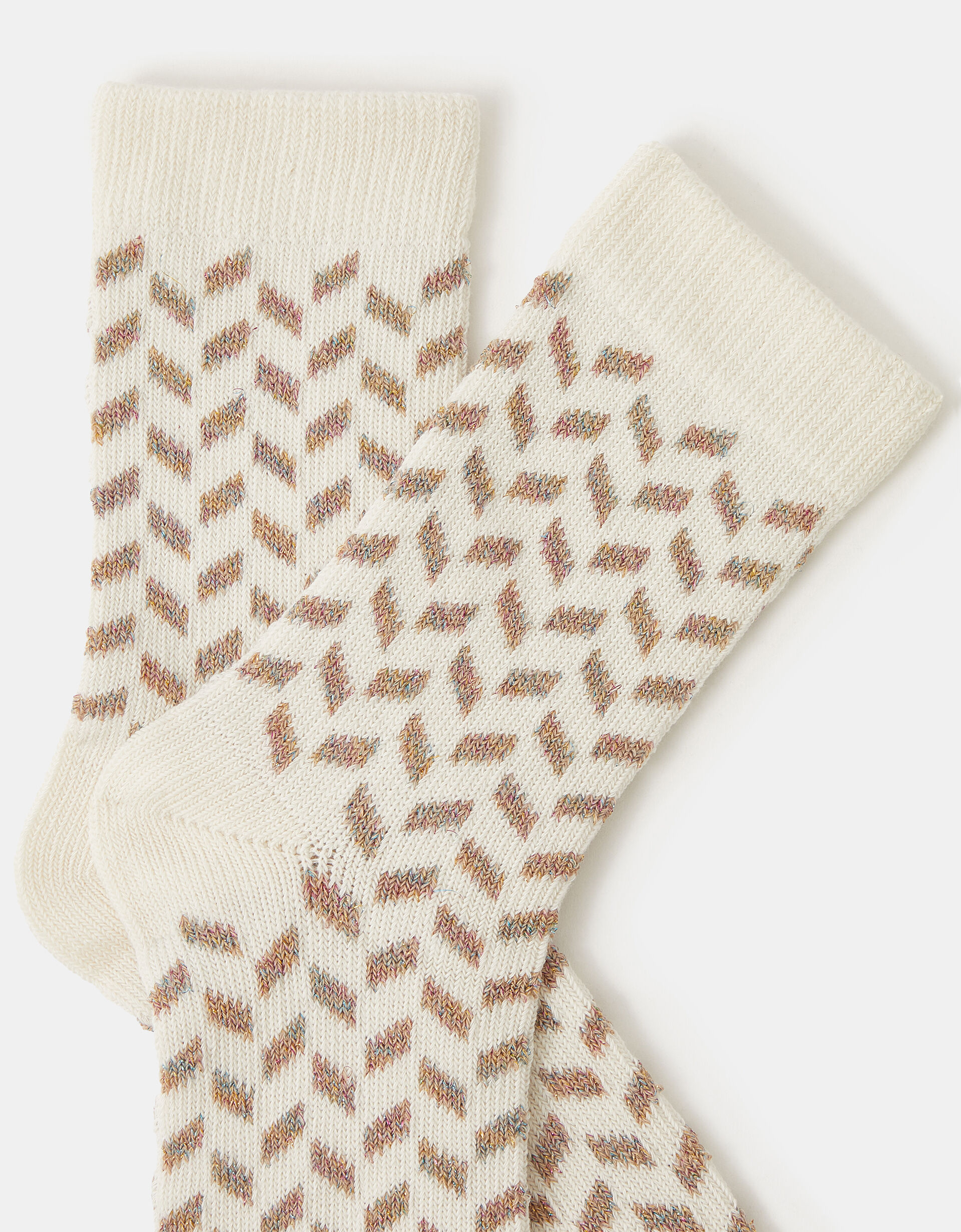 Because who wants boring socks in their underwear drawer? Made from a soft blend, these socks are patterned with chevron stripes in a colourful metallic finish.