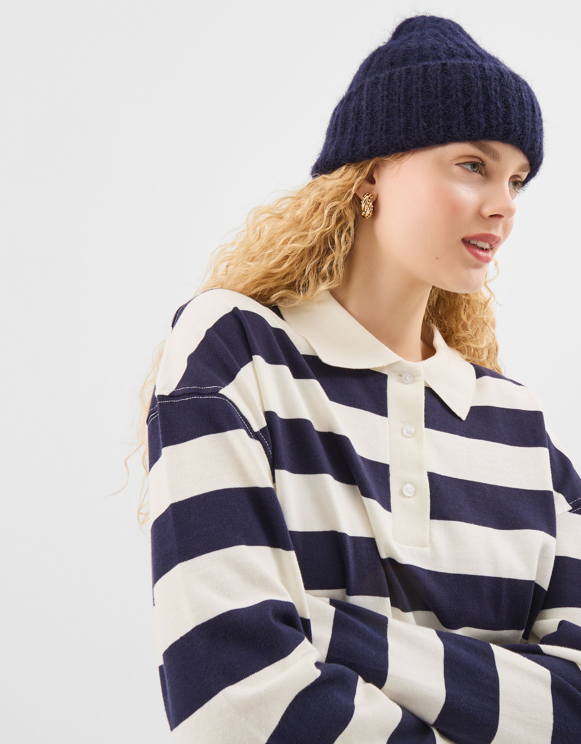 An essential, let’s be honest. If it’s not the fact it’s a timeless style you can wear season after season, i’m sure the soft, fluffy yarns will make you add this to your shopping cart. Designed in navy blue, this beanie hat features a turn-up brim and chunky ribbed finish.