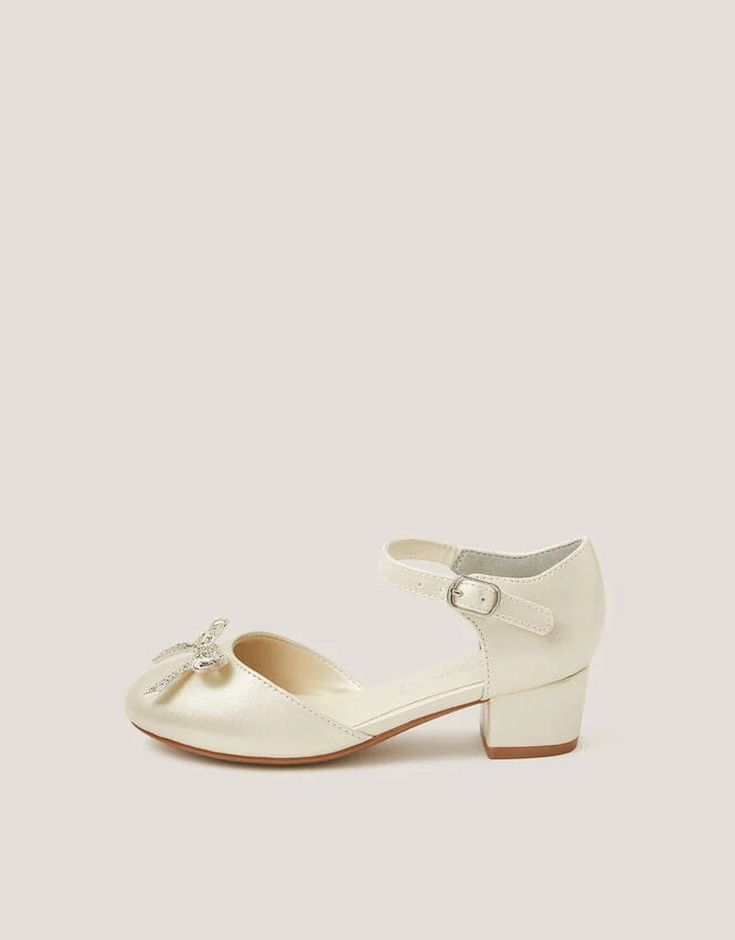 Take a bow. Embellished with a glittering diamanté bow, these heels are a standout in their shoe collection. Featuring a closed-toe and ankle strap fastening, they’re perfect for weddings and communion, season after season. Ivory