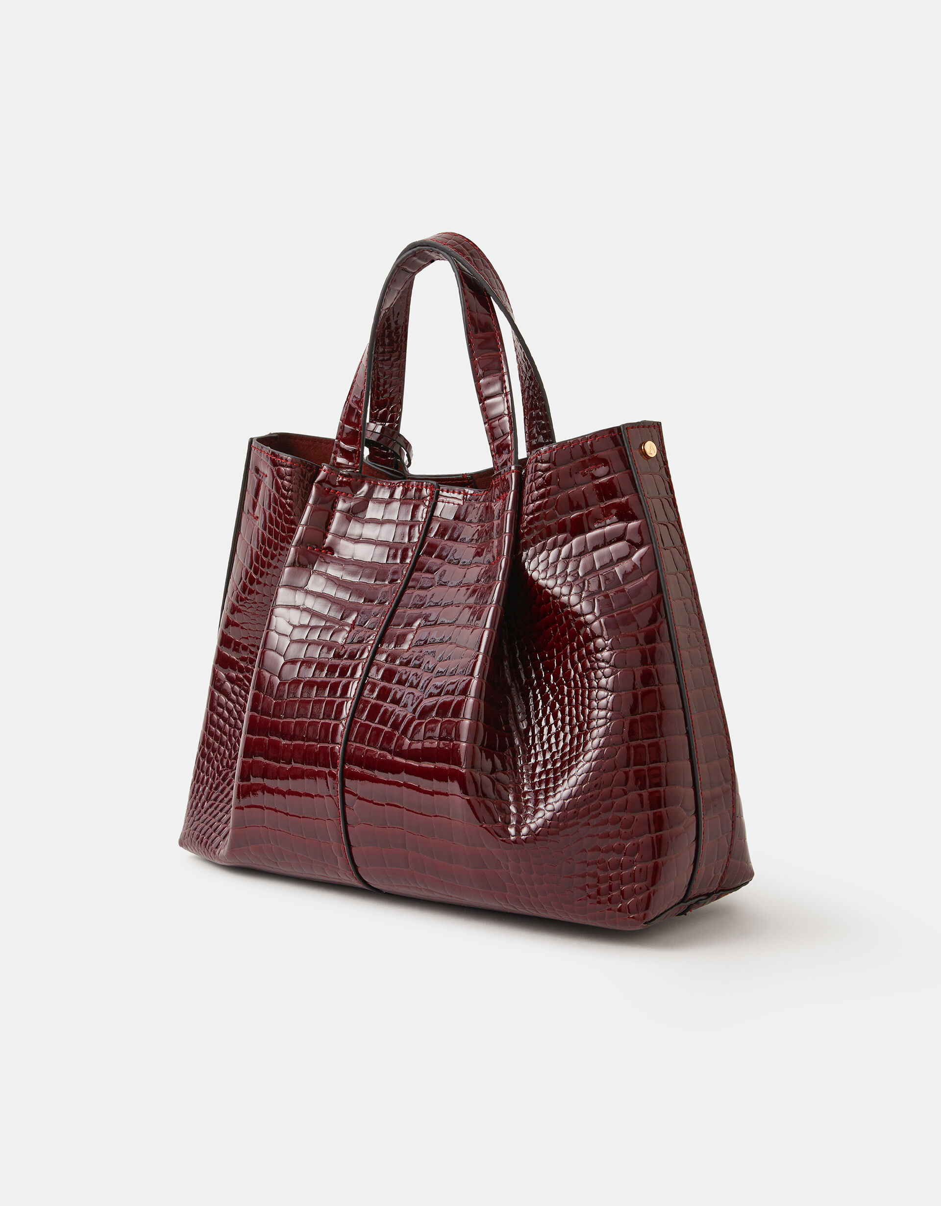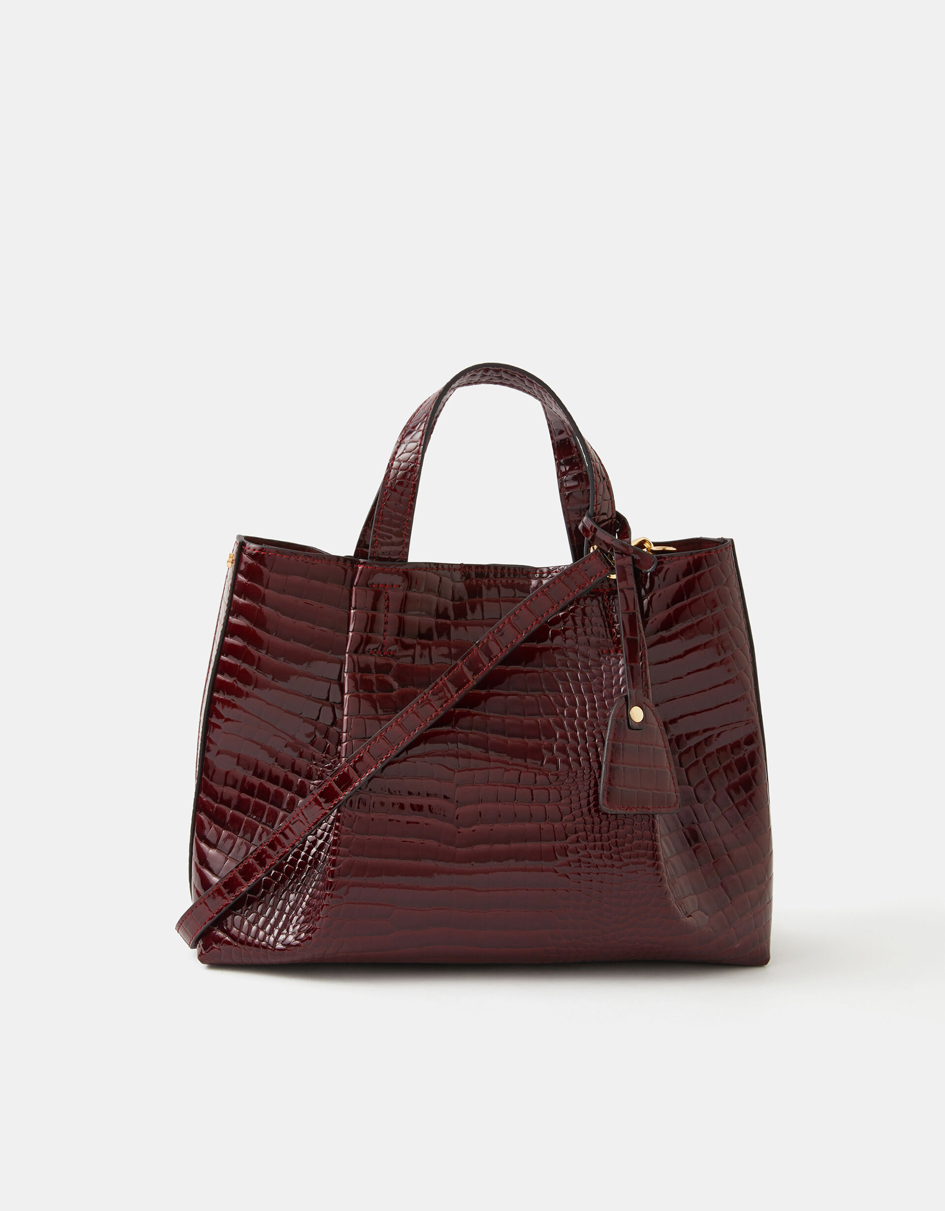 Boujee! Crafted with a faux croc finish, this bag is the perfect accessory for dressing up on office days or evening’s out. Finished with a magnetic button fastening and cross body strap. Red