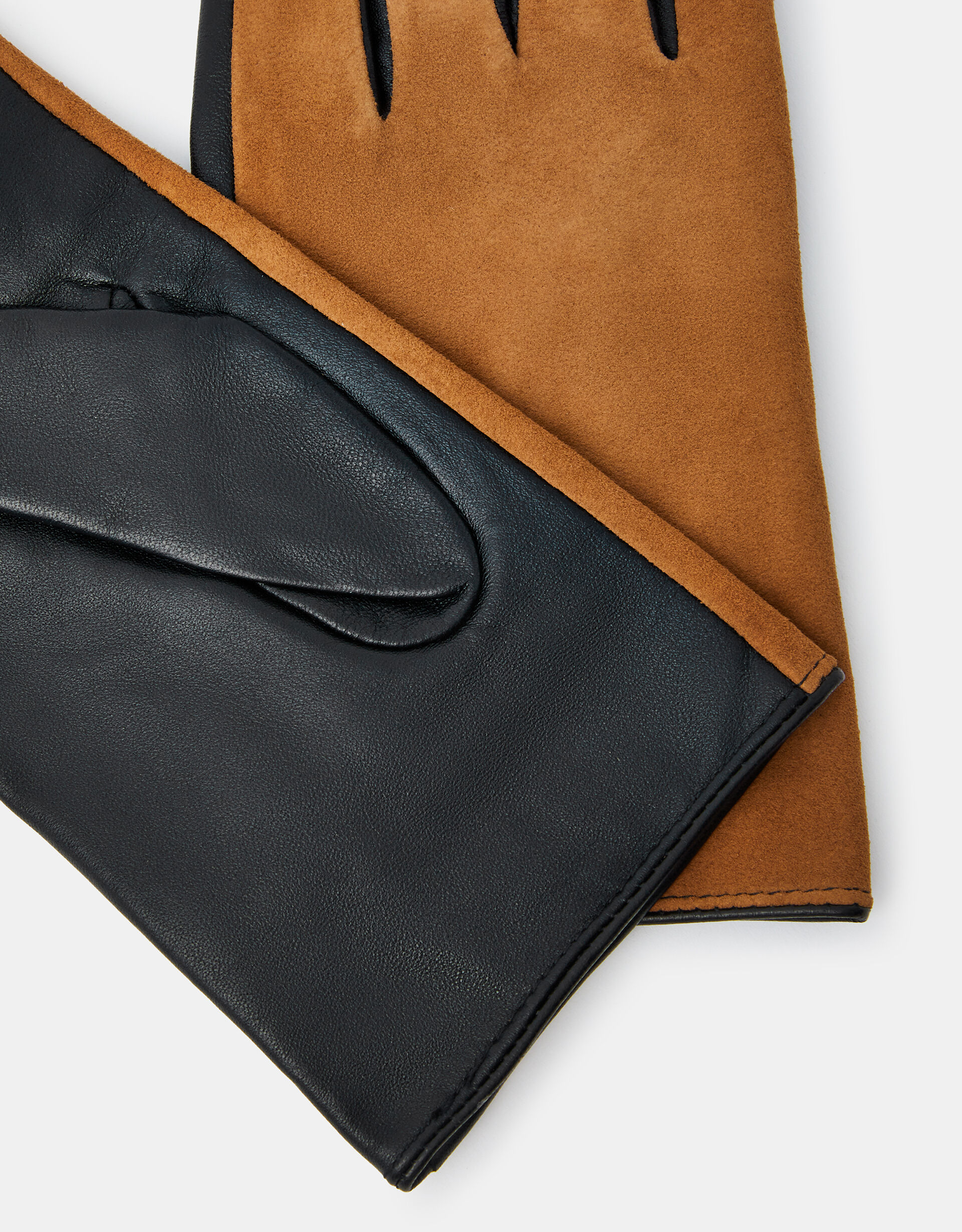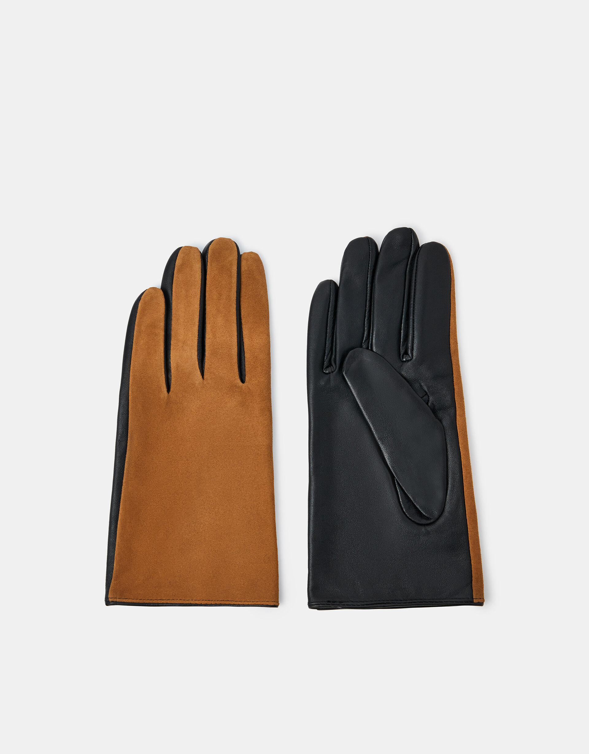 A chic winter staple, faux sure. Made from soft suedette and faux leather, these gloves are a timeless addition to your cold-weather accessories. Tan