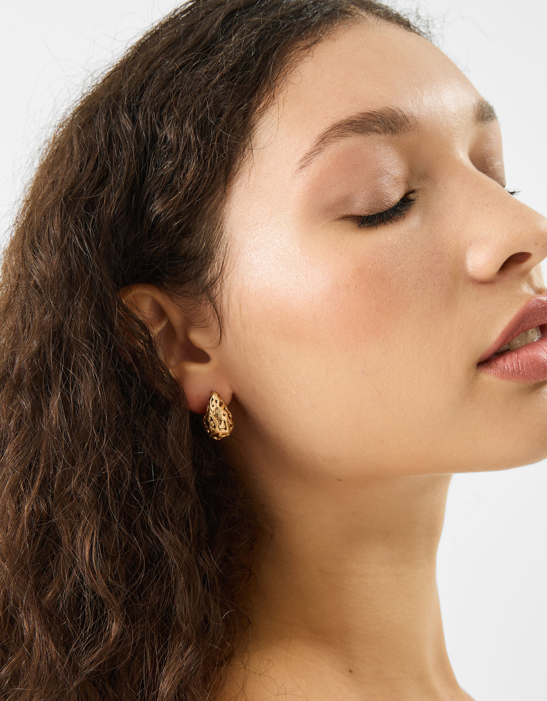 Brace yourself for endless compliments with these at your sides. Dipped in an antique gold-inspired finish, these statement studs showcase an ornamental cut-out design all the way from the stud to the curve. Non-refundable.