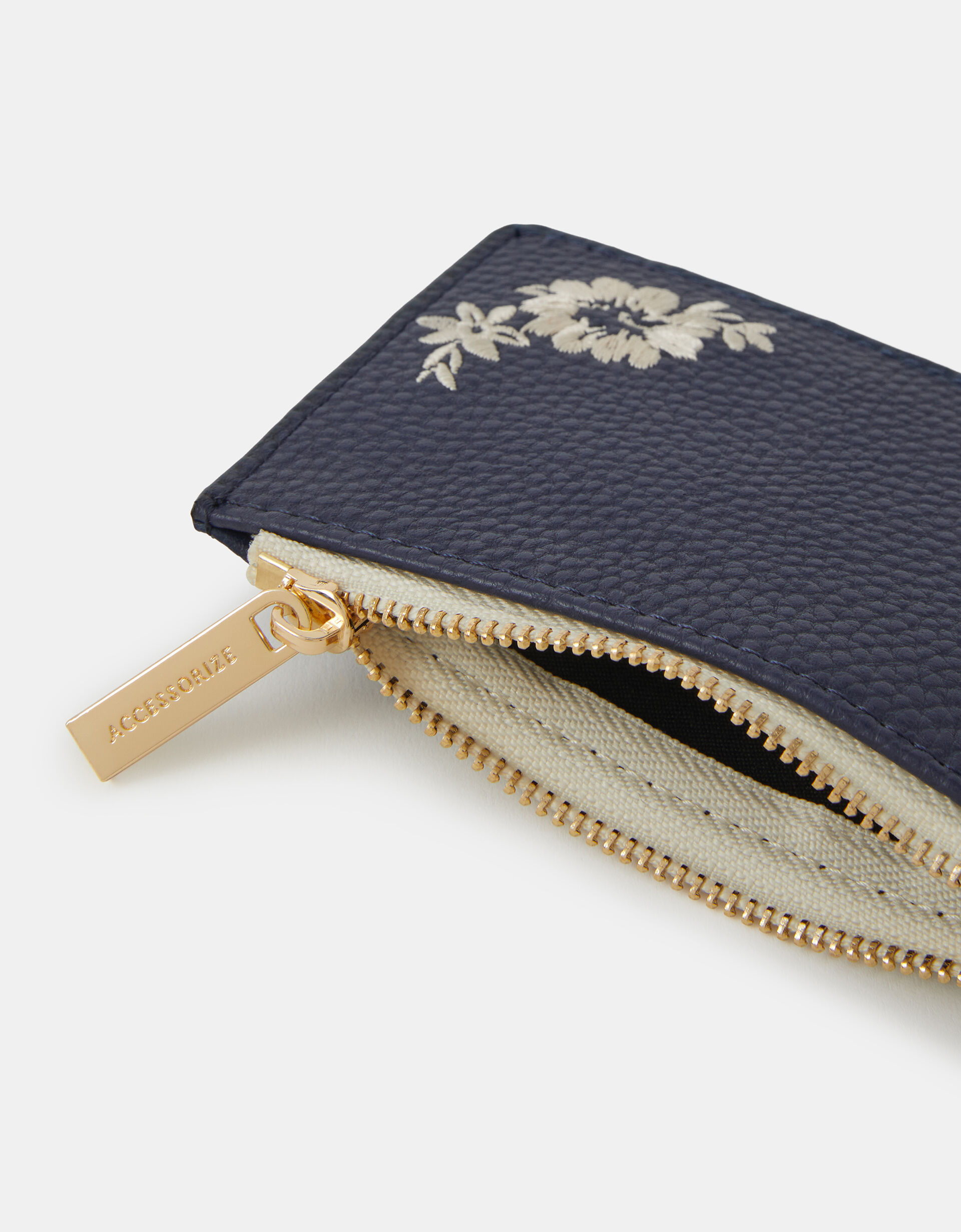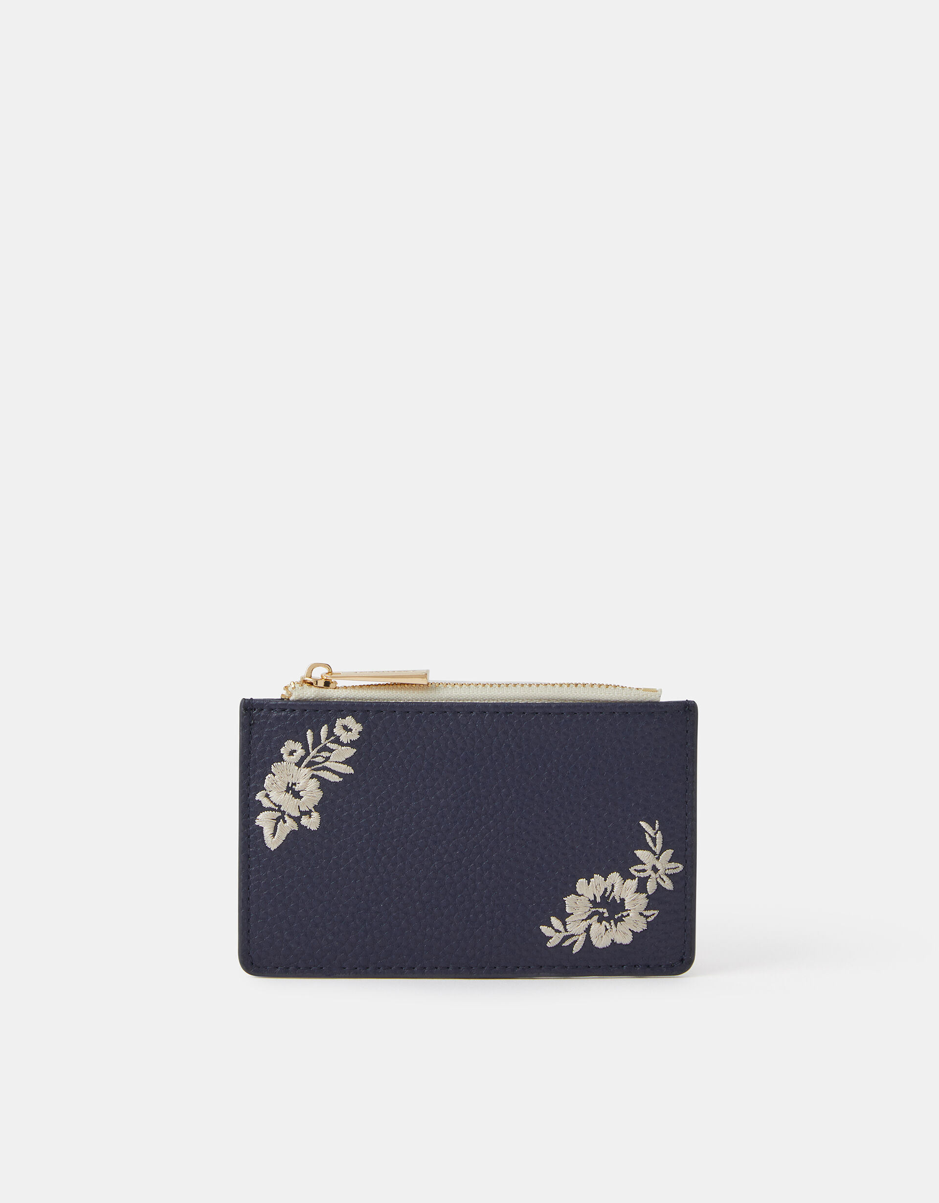 Cute and compact, this card holder is perfectly sized to fit in any of your bags. Embroidered with florals, it features a zip compartment for coins and four card slots to the back.