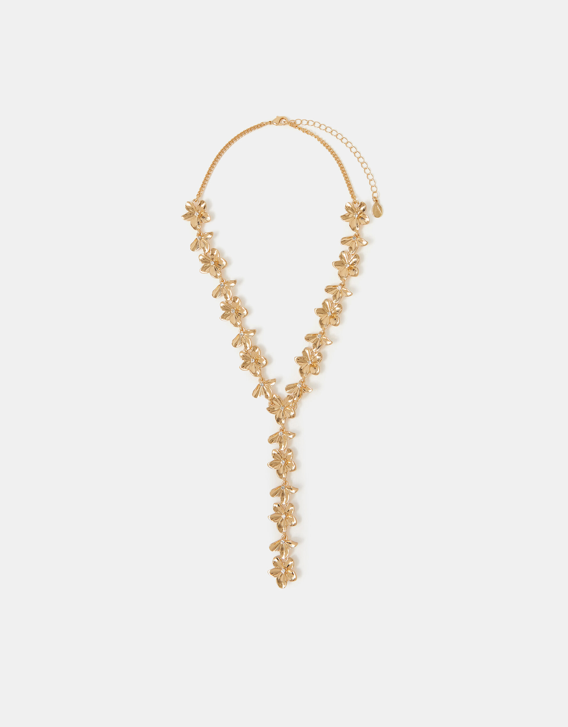 Oh, hello you! Take your v-neck tops and strappy dresses to the next level with this Y-shaped necklace. Adorned with golden flowers and sparkly stones, it’s complete with a lobster clasp and extender.