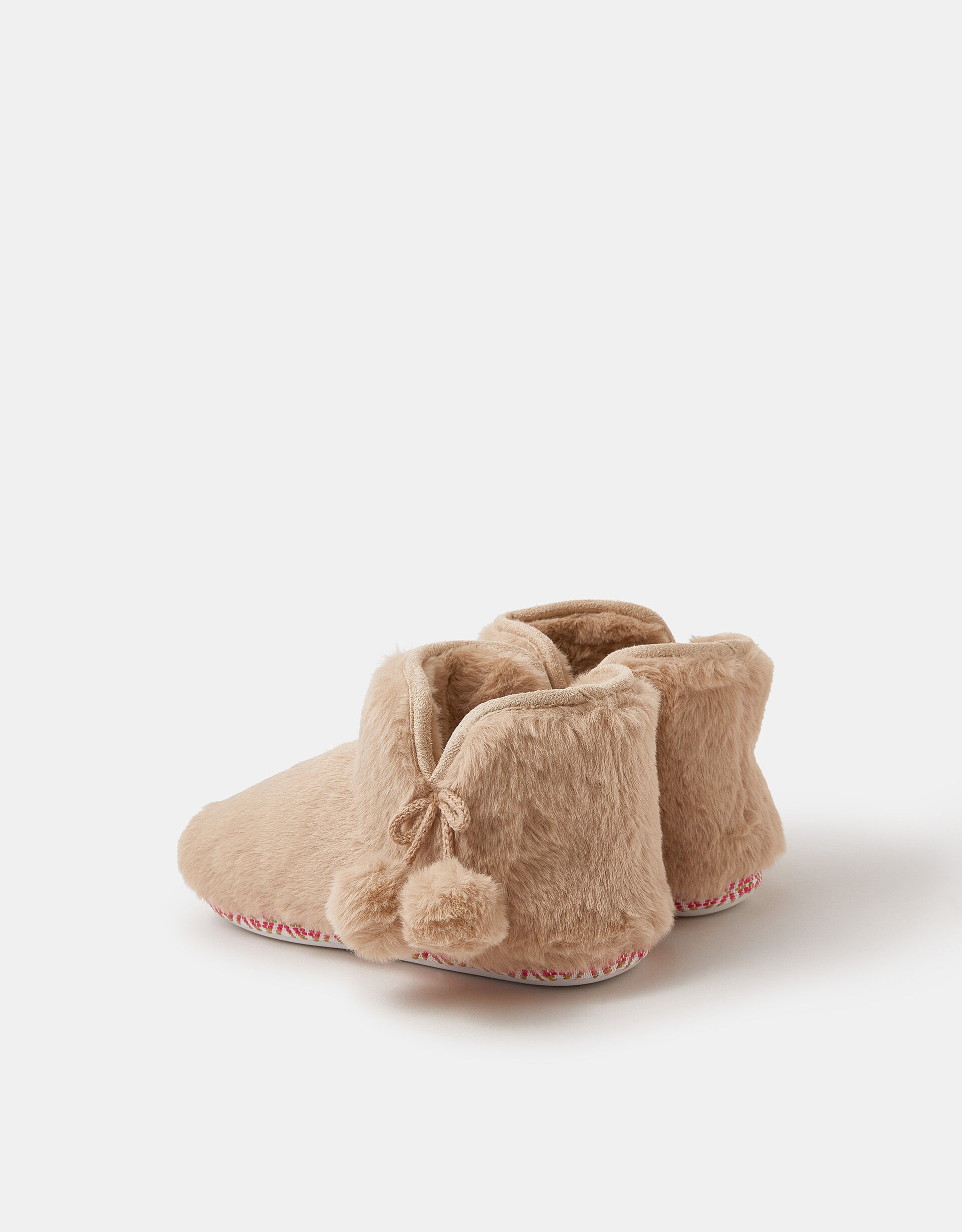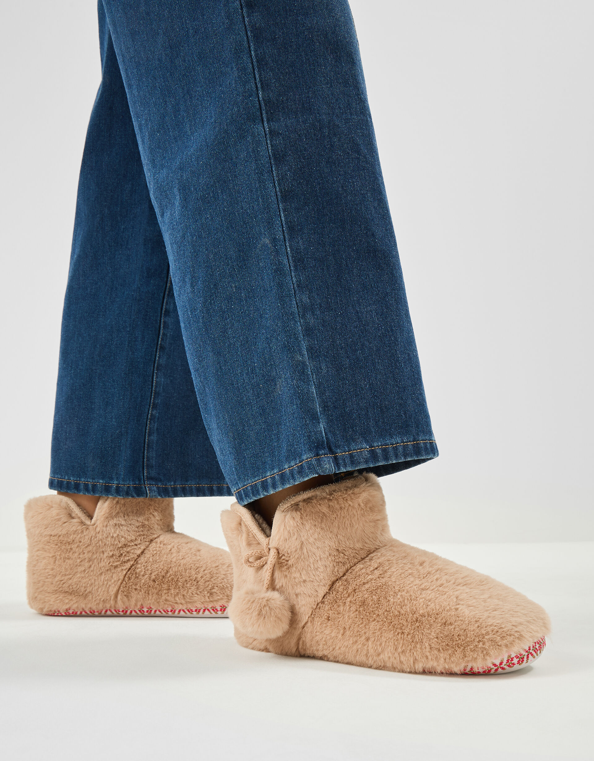 Get home. Bra off. Slippers ON. Made with super-fluffy faux fur, these slipper boots make nights-in so much more tempting. Finished with braided sole details and a pom-pom bow at the side. Natural