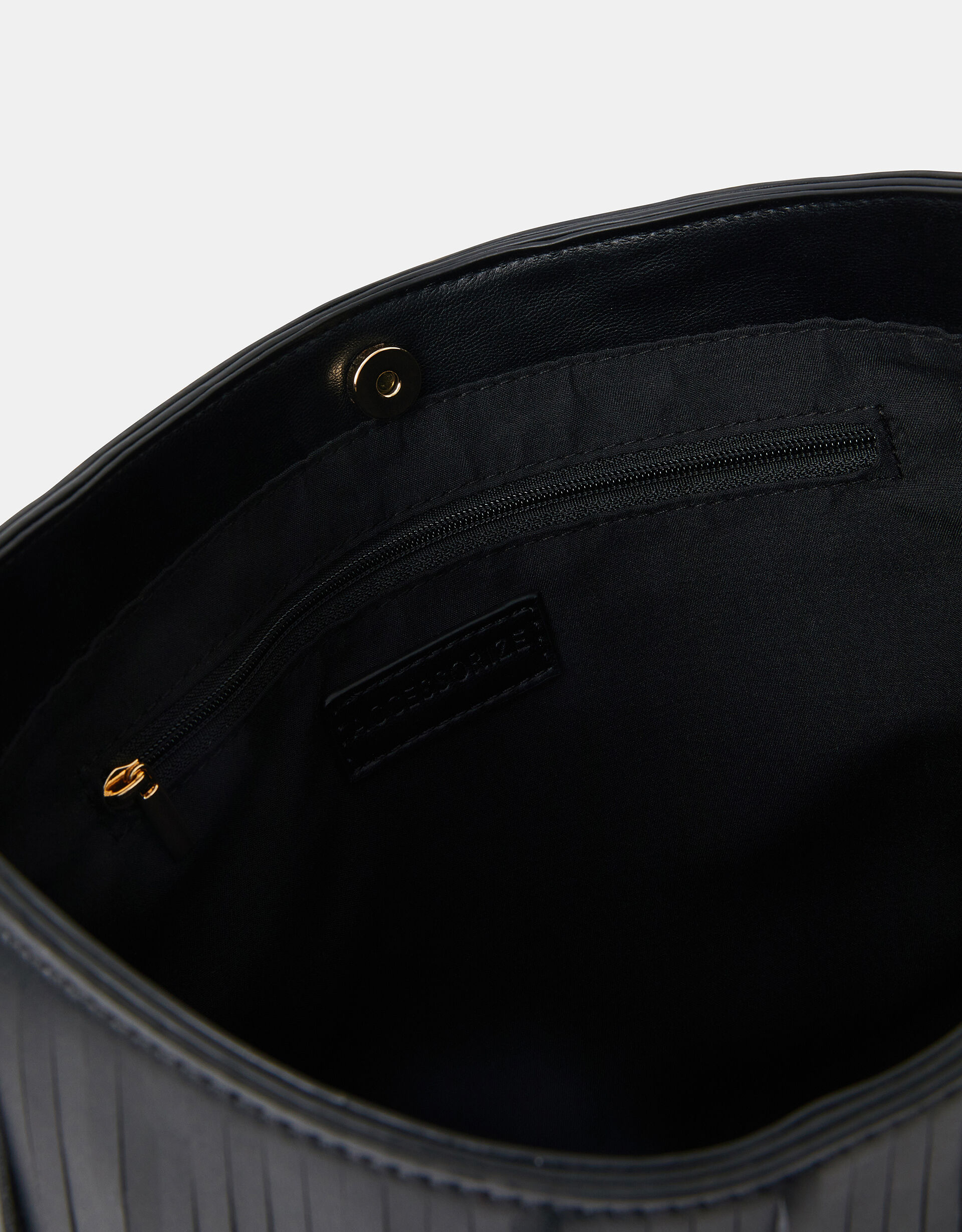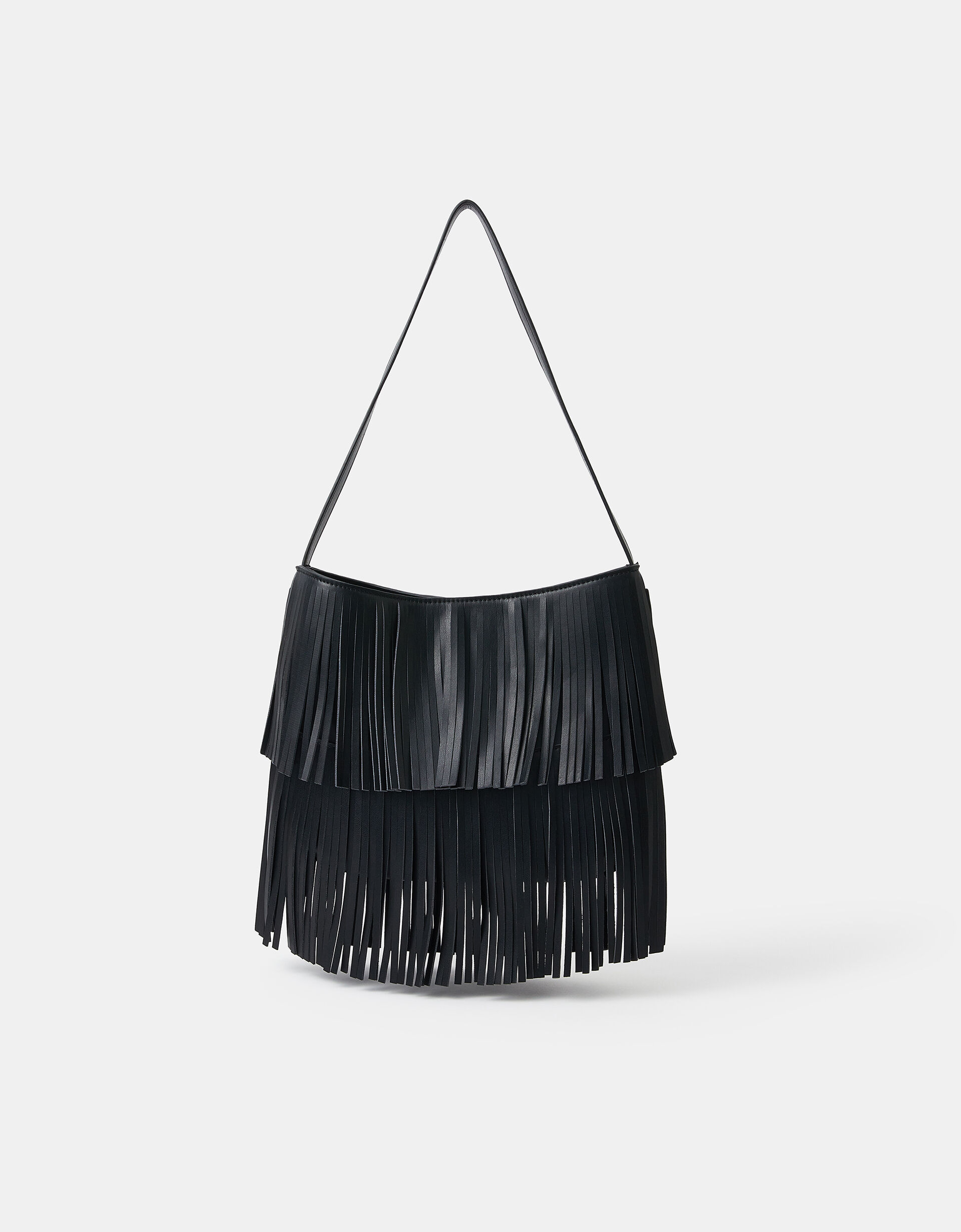 Add a little bit of boho to your looks with this shoulder bag. Made from smooth faux leather, it’s decorated with tiers of swishy fringing for a statement festival-worthy finish. Designed with a magnetic button fastening and internal zip pocket.