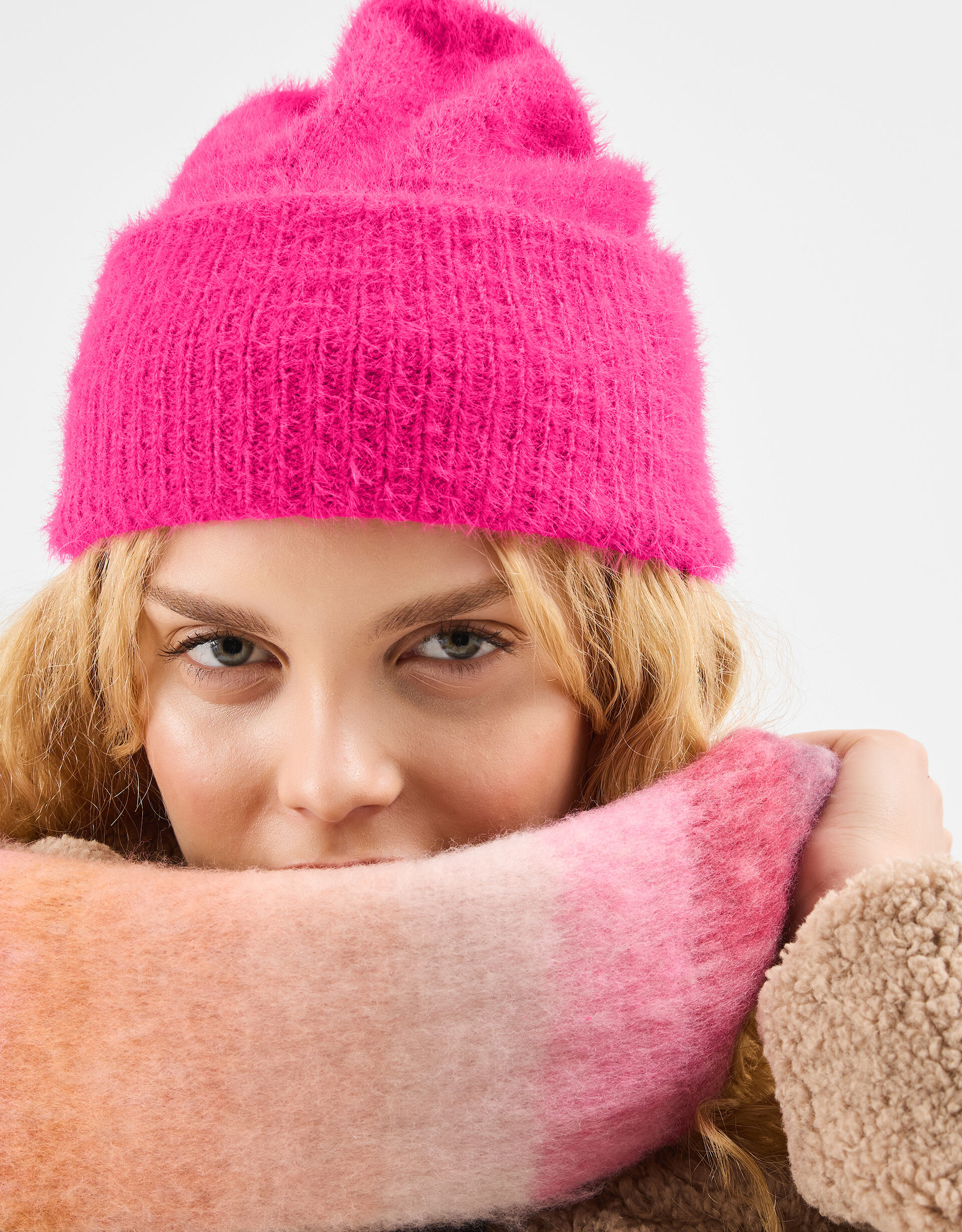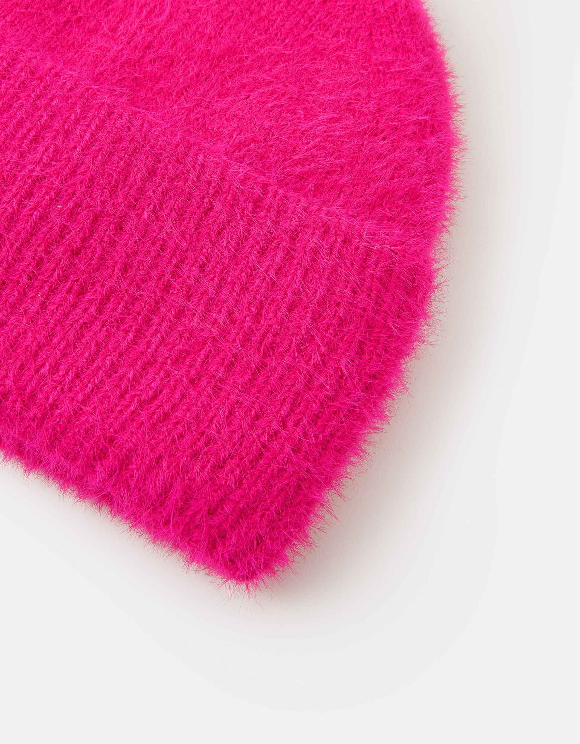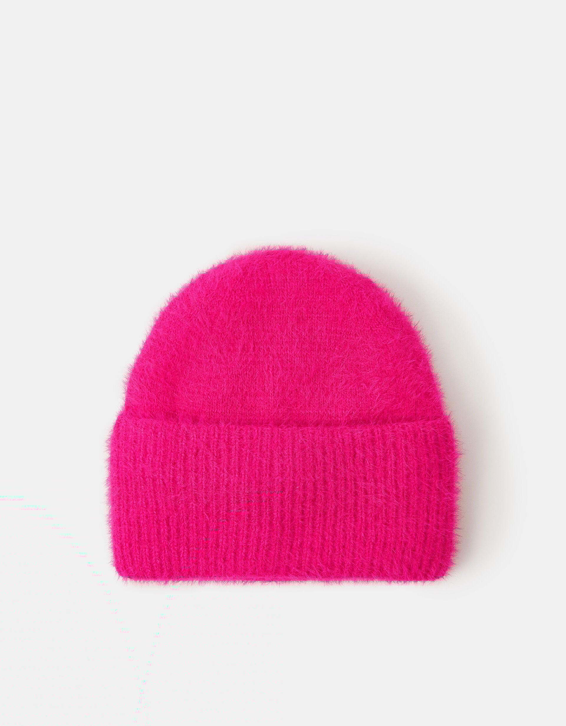 Add a pop of colour to gloomy days and winter looks with this vibrant beanie hat. Stitched with soft, fluffy yarns in a hot pink colour, it’s finished with a classic turned-up brim for ultimate cosiness.