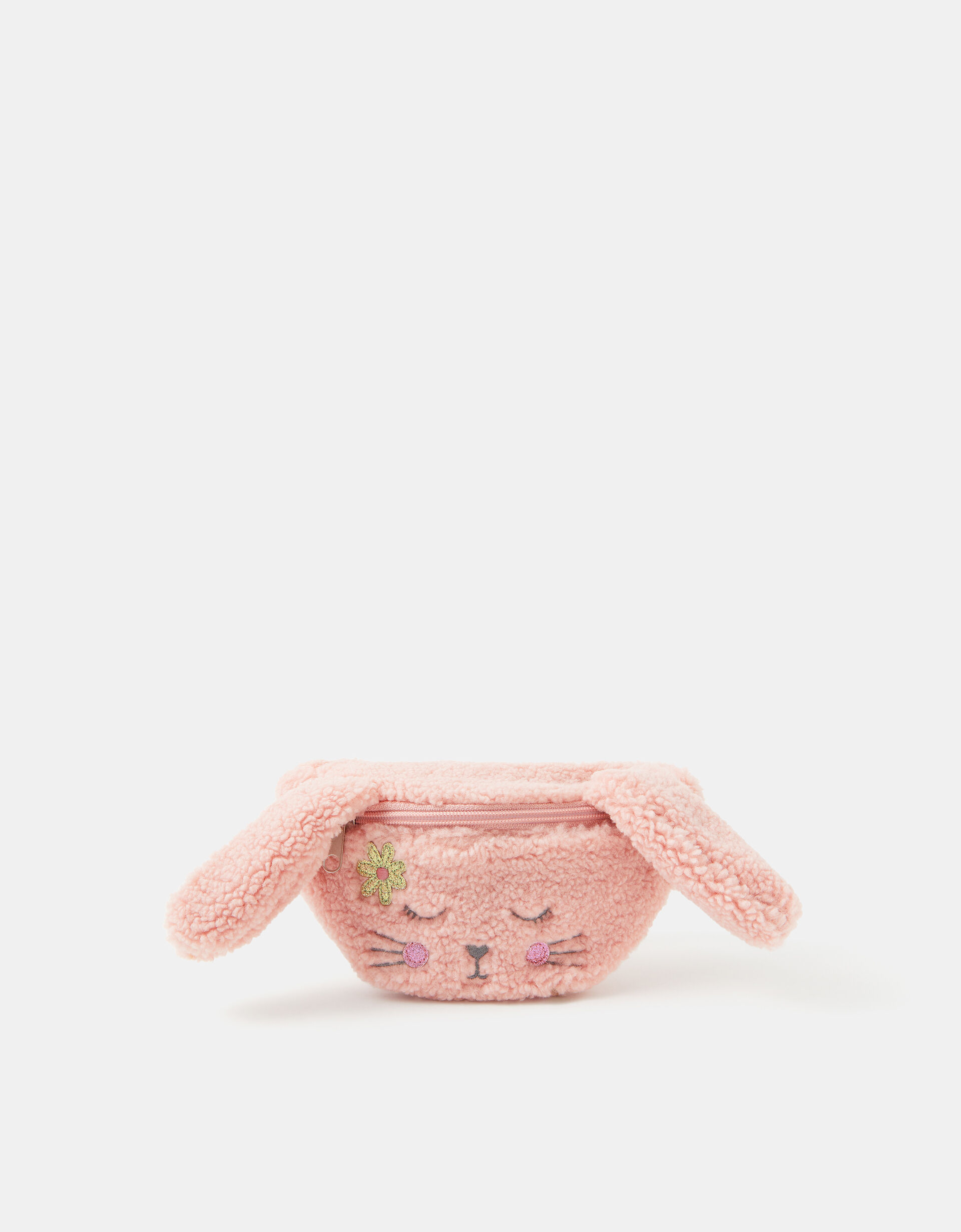 Oh-so-cuddly! Perfect for clipping around their waist or styling as a crossbody, this fluffy belt bag is designed in pink borg and features a sweet bunny face to the front. Fastens with a side release buckle on an adjustable strap. Warning! Choking Hazard—Small parts. Not suitable for children under 3 years old.
