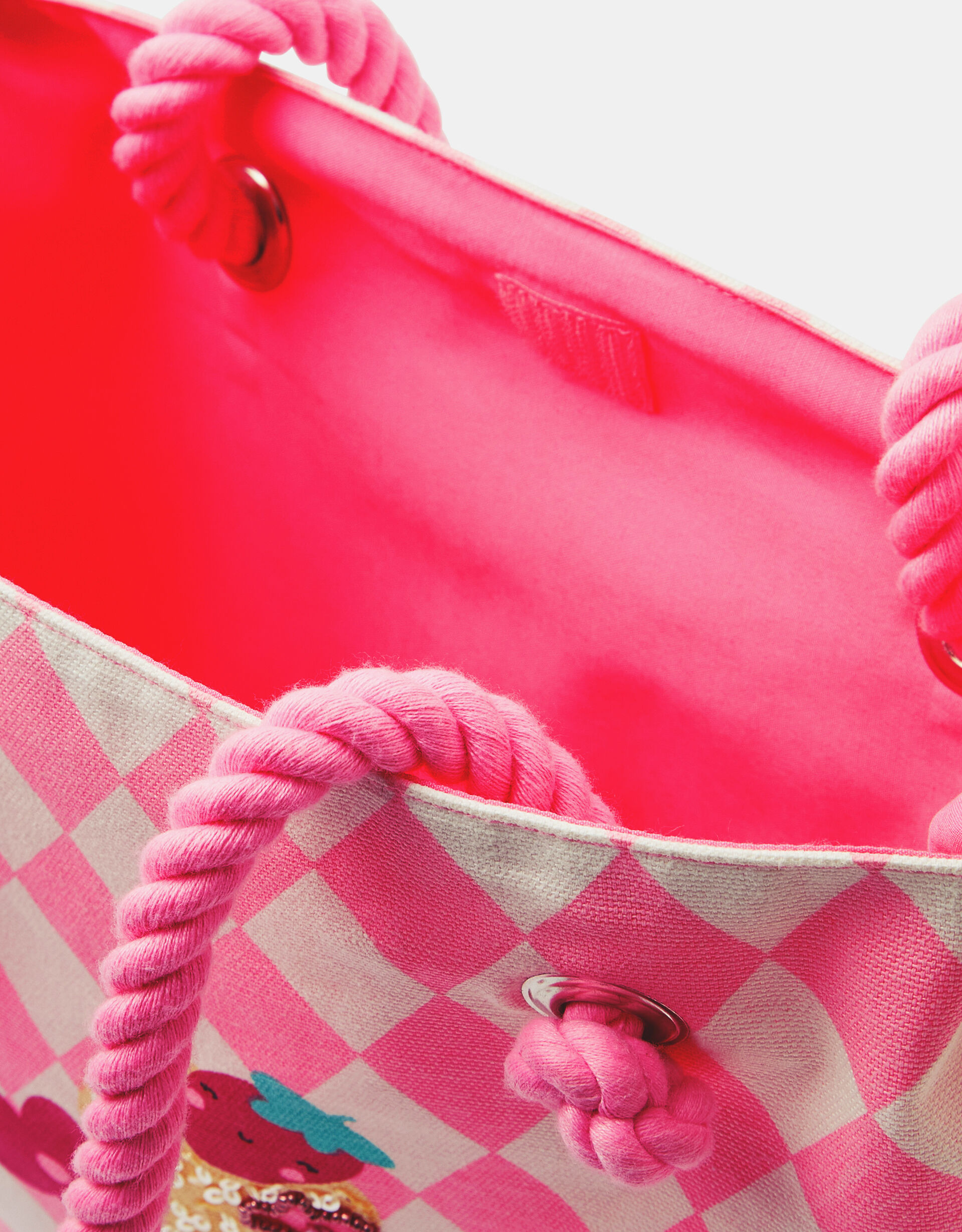Pairing best with blue skies and sandy toes, this tote bag is designed with a sparkly ice cream on a cool checkerboard backdrop. It features fringed edges and durable rope handles, making it the perfect beach companion. Yummy, right?