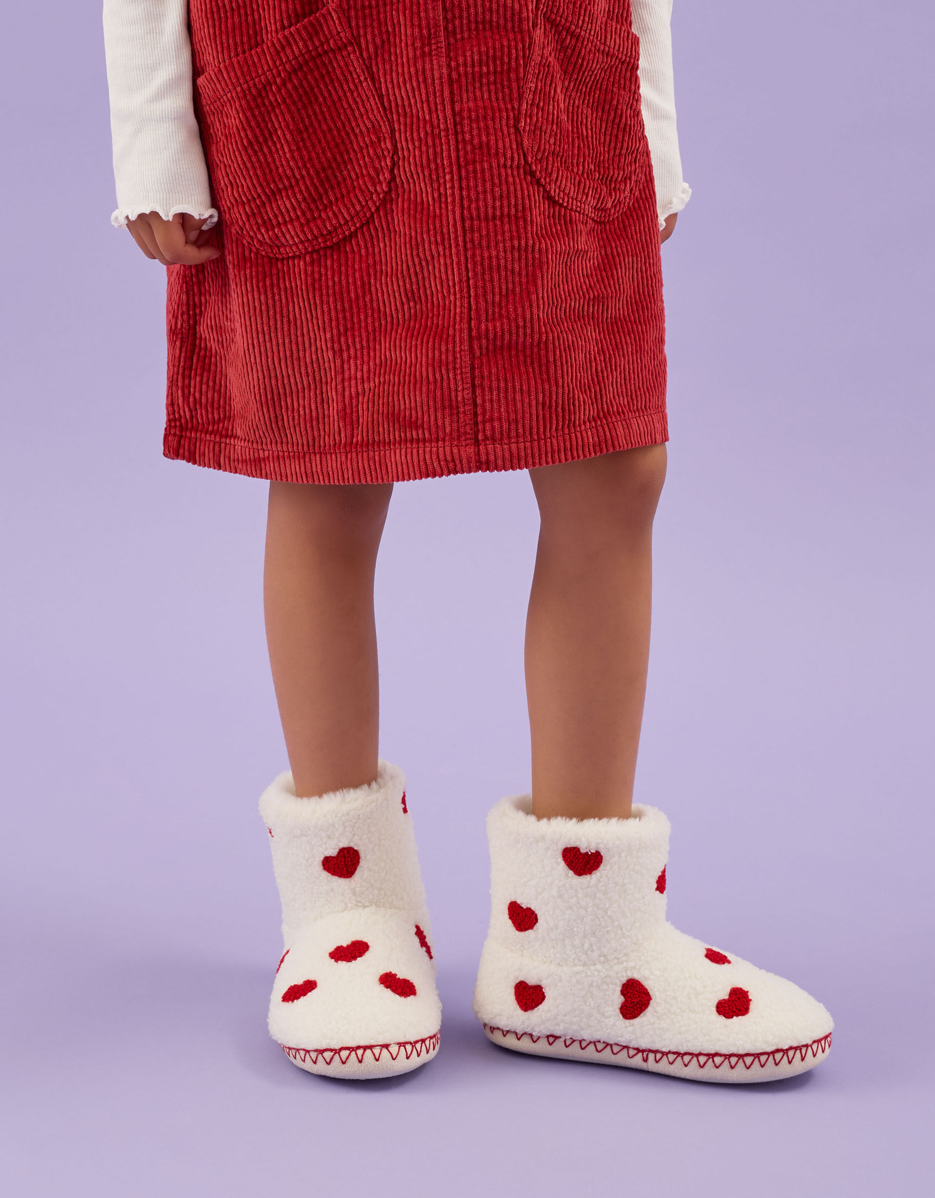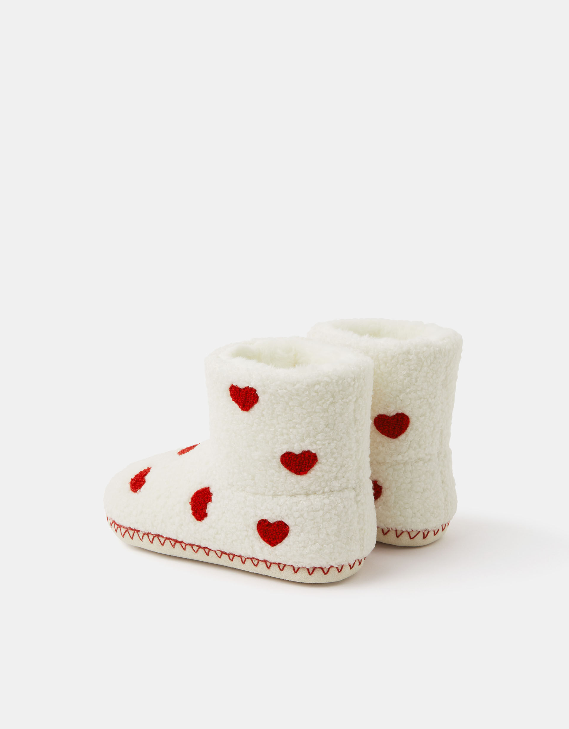 They’ll love these. Made from super-soft borg fabric and stitched with sweet red heart motifs throughout, these slipper boots are perfect for slipping on after bath time. Natural