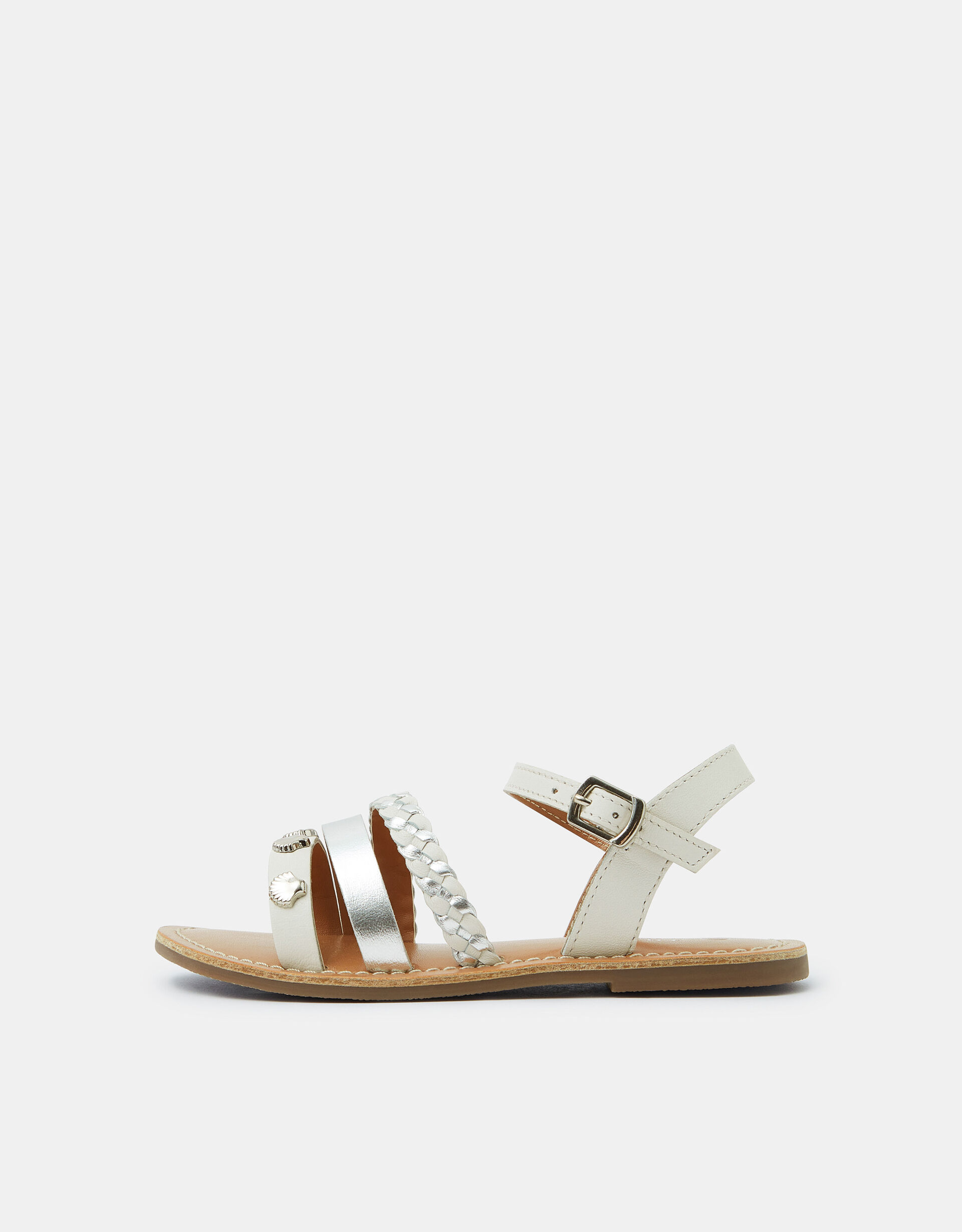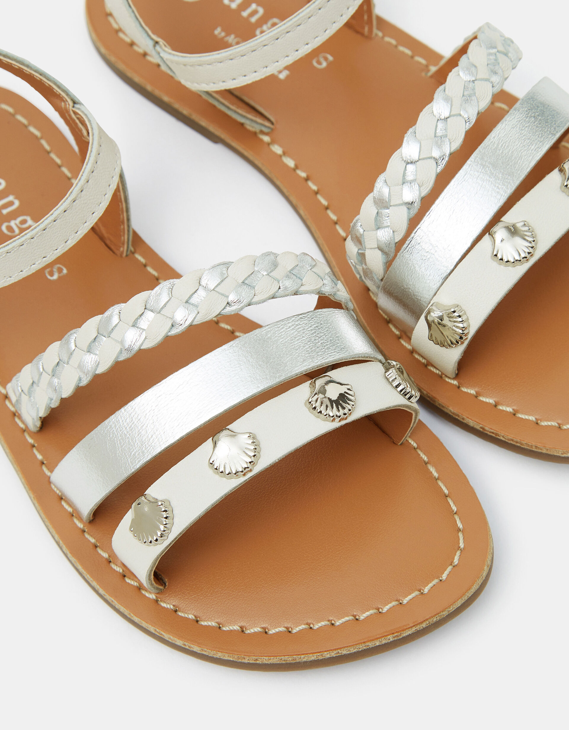 Best paired with sandy toes and sun-kissed skin, these sandals are a must-have for summertime. Designed with a silver metallic finish, they feature a trio of open-toe straps, seashell hardware and an ankle buckle fastening.