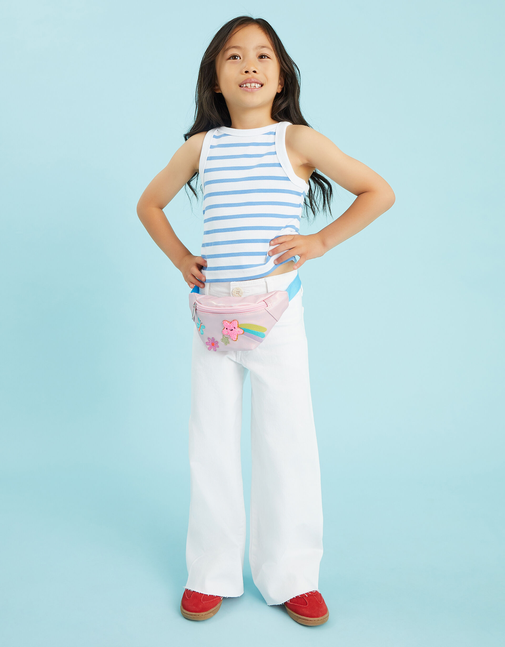 A cool belt and practical bag all-in-one? We’re listening. Embellished with stars, hearts, and sparkly flowers, this belt bag opens with a zip fastening, boasting plenty of room for sweets, lip balm, and their phone. Fastens with a side release buckle on an adjustable strap.