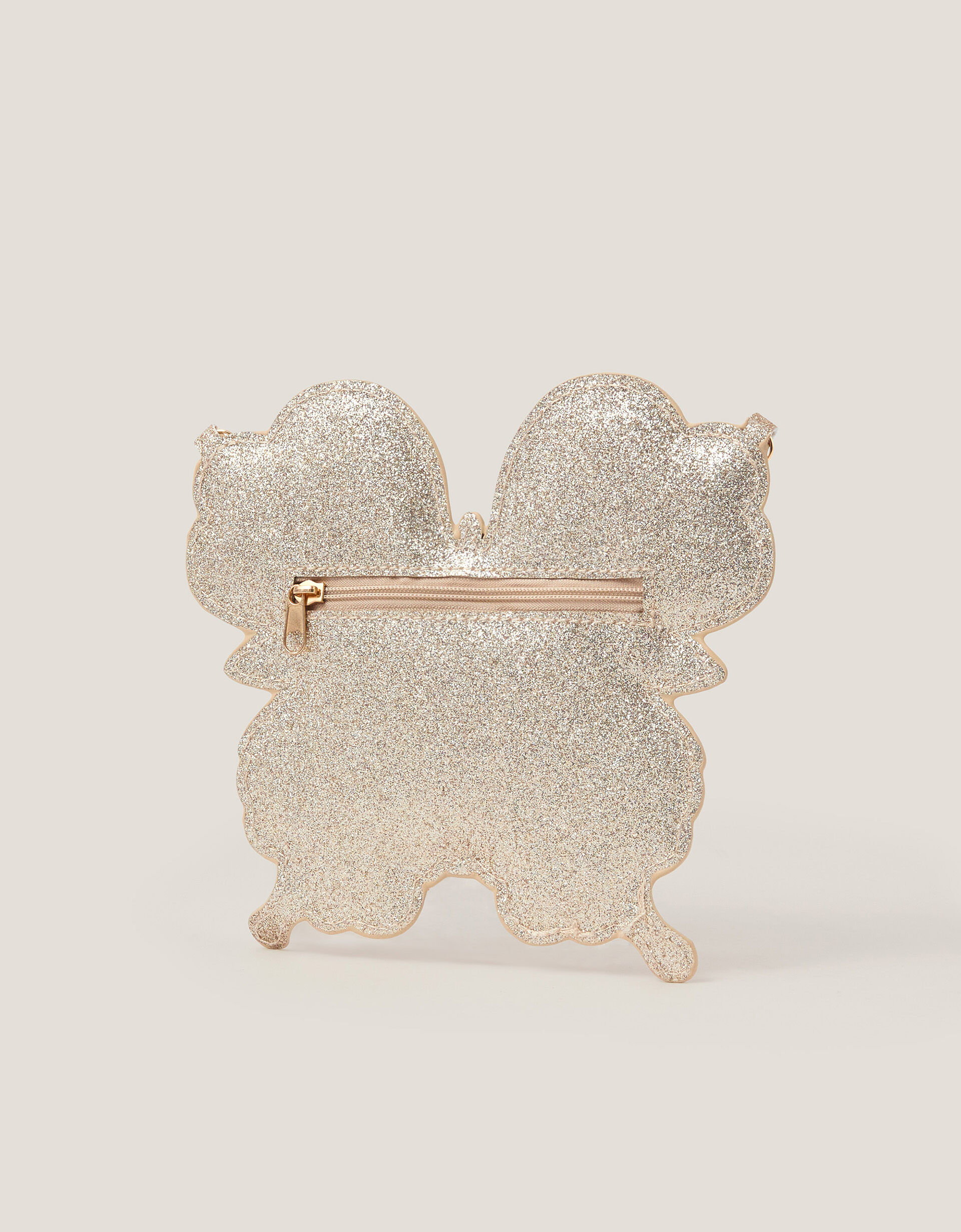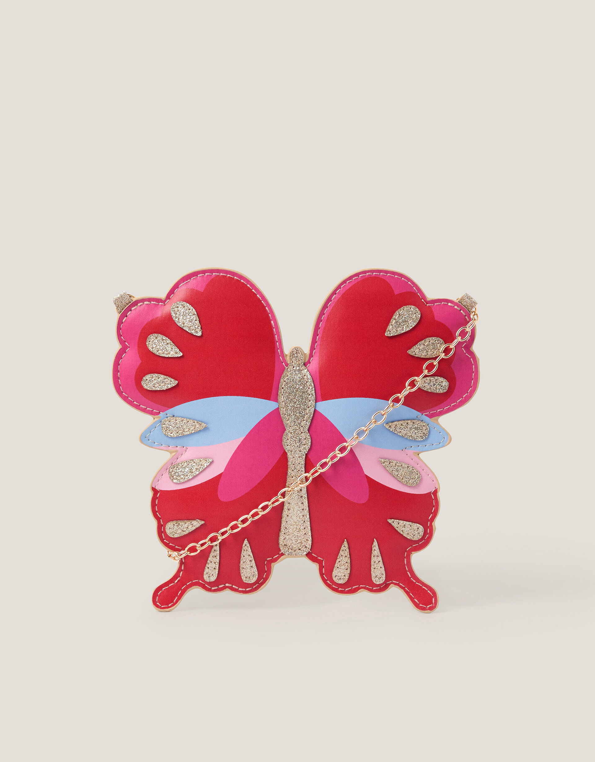 Wings at the ready! Shaped like a butterfly in bold, bright colours and glittery finishes, this crossbody bag will make all their weekend looks flourish. Finished with a small zip compartment and gold-tone chain strap.