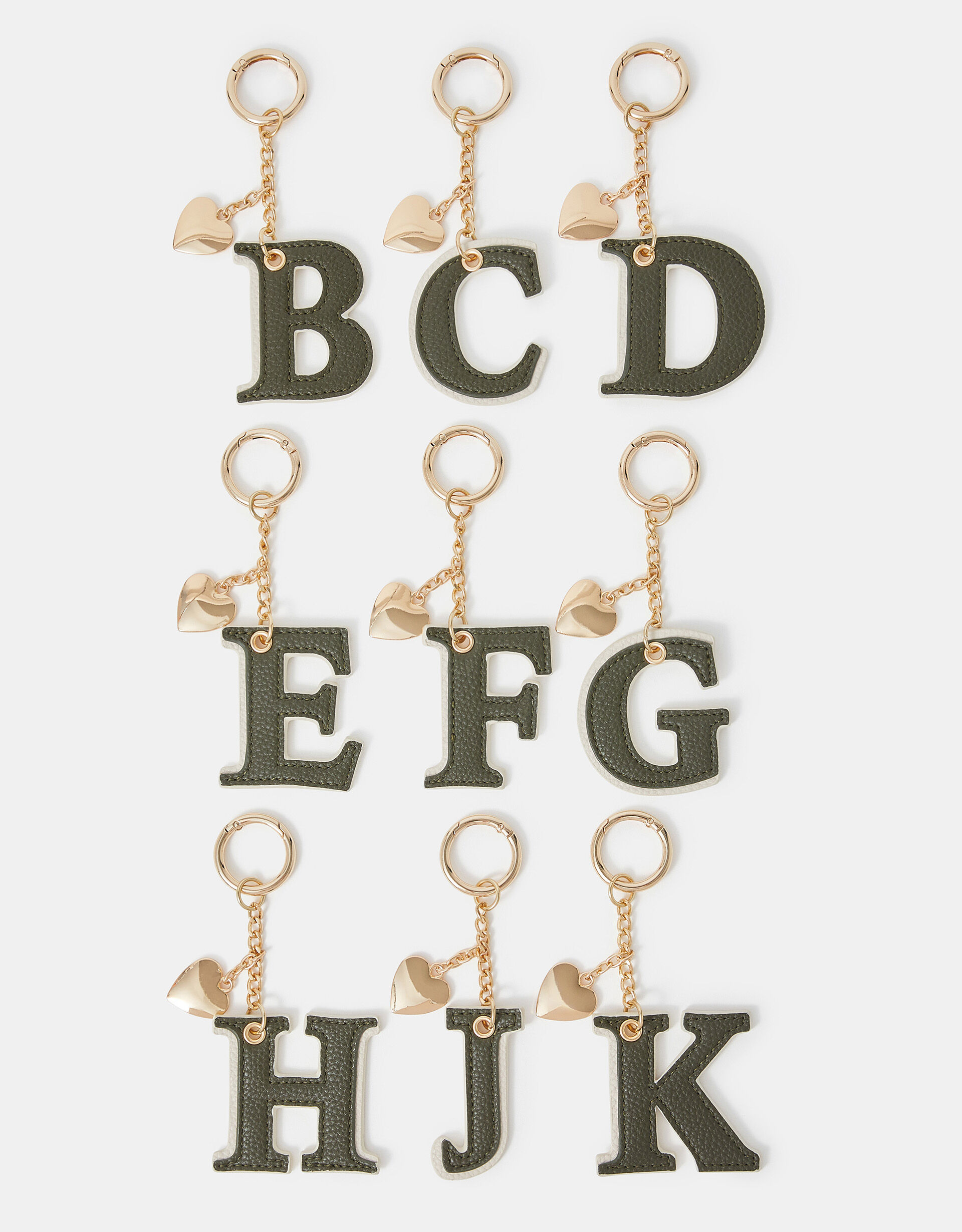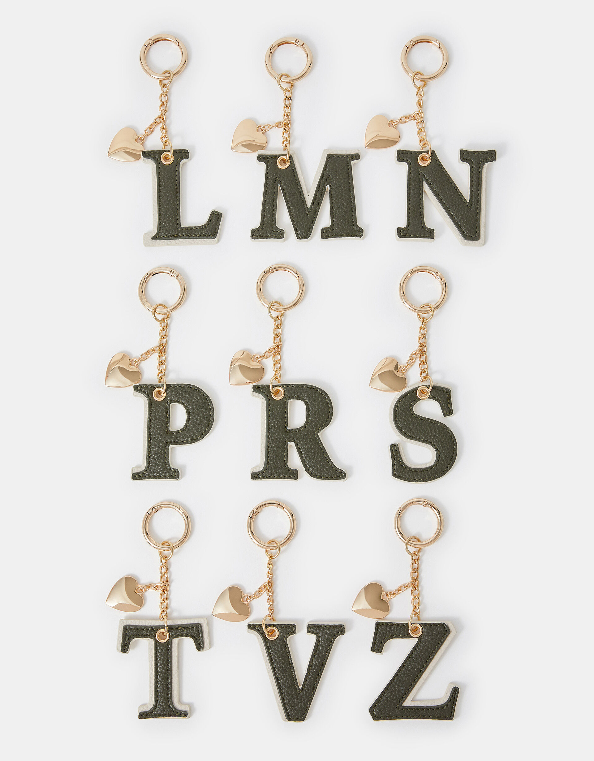 Add a personalised touch to your bag with this initial bag charm. Made from faux leather, it’s finished with a gold-tone heart charm to match the round clip fastening. Green