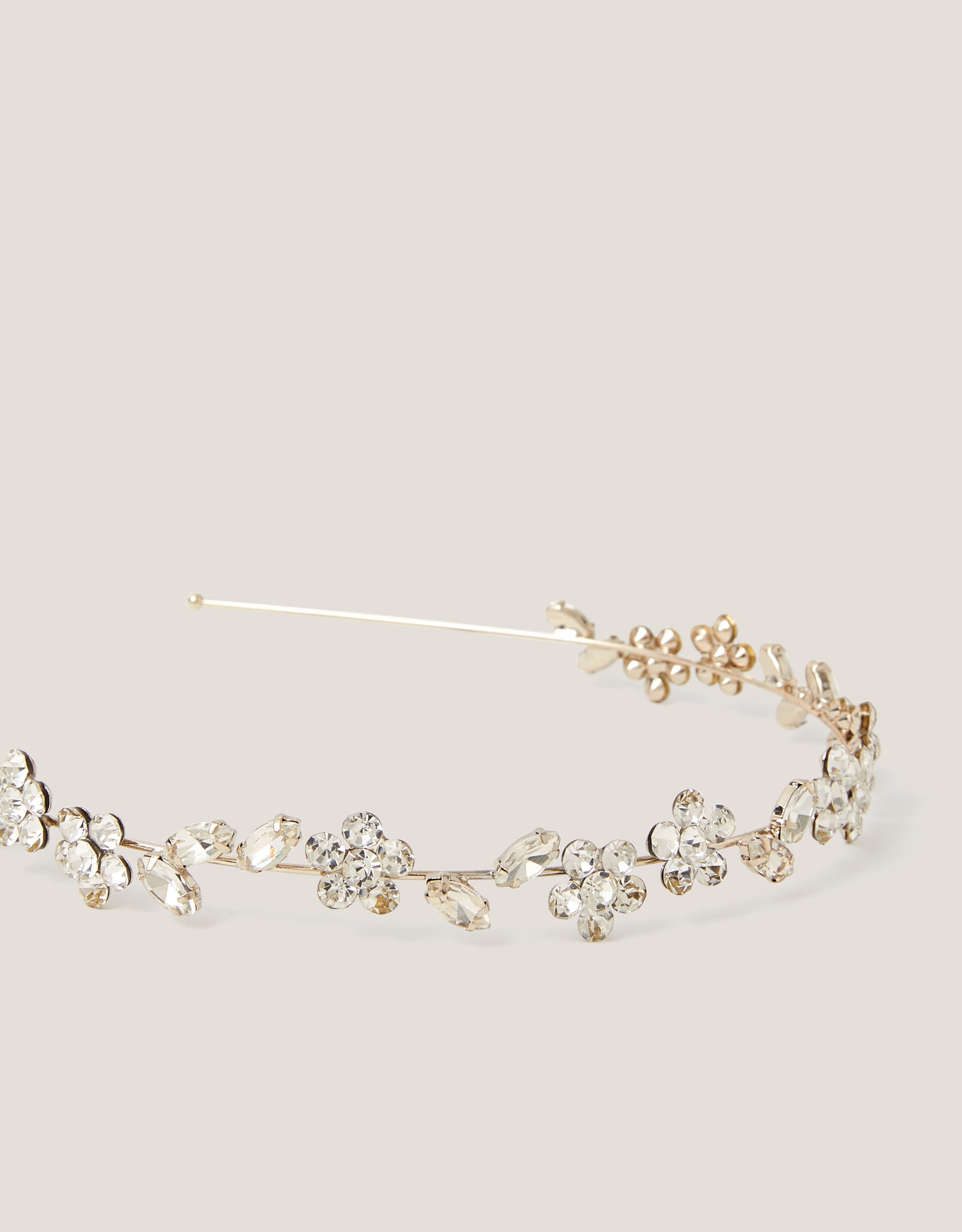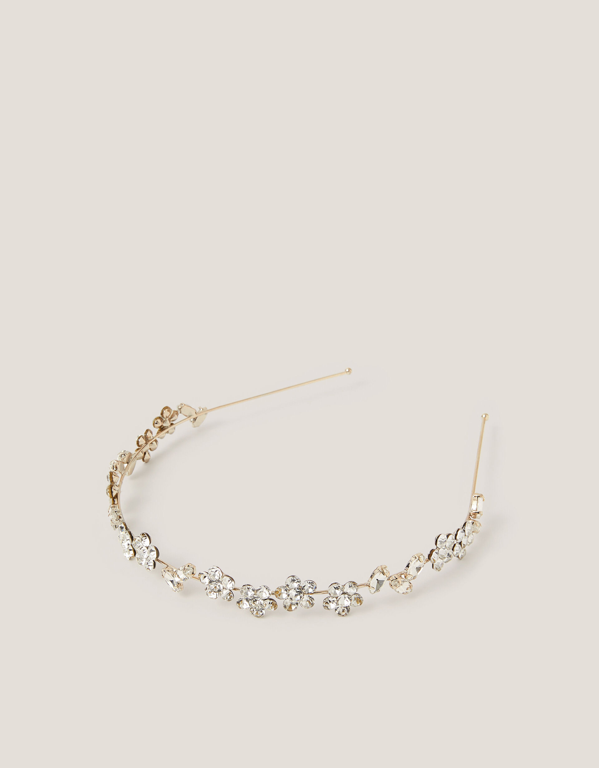 A different type of bridal bouquet. Ensuring the mini bridesmaids sparkle as they walk down the aisle, this headband showcases jewel flowers decorating the gold-tone metal band. Warning! Choking Hazard—Small parts. Not suitable for children under 3 years old.