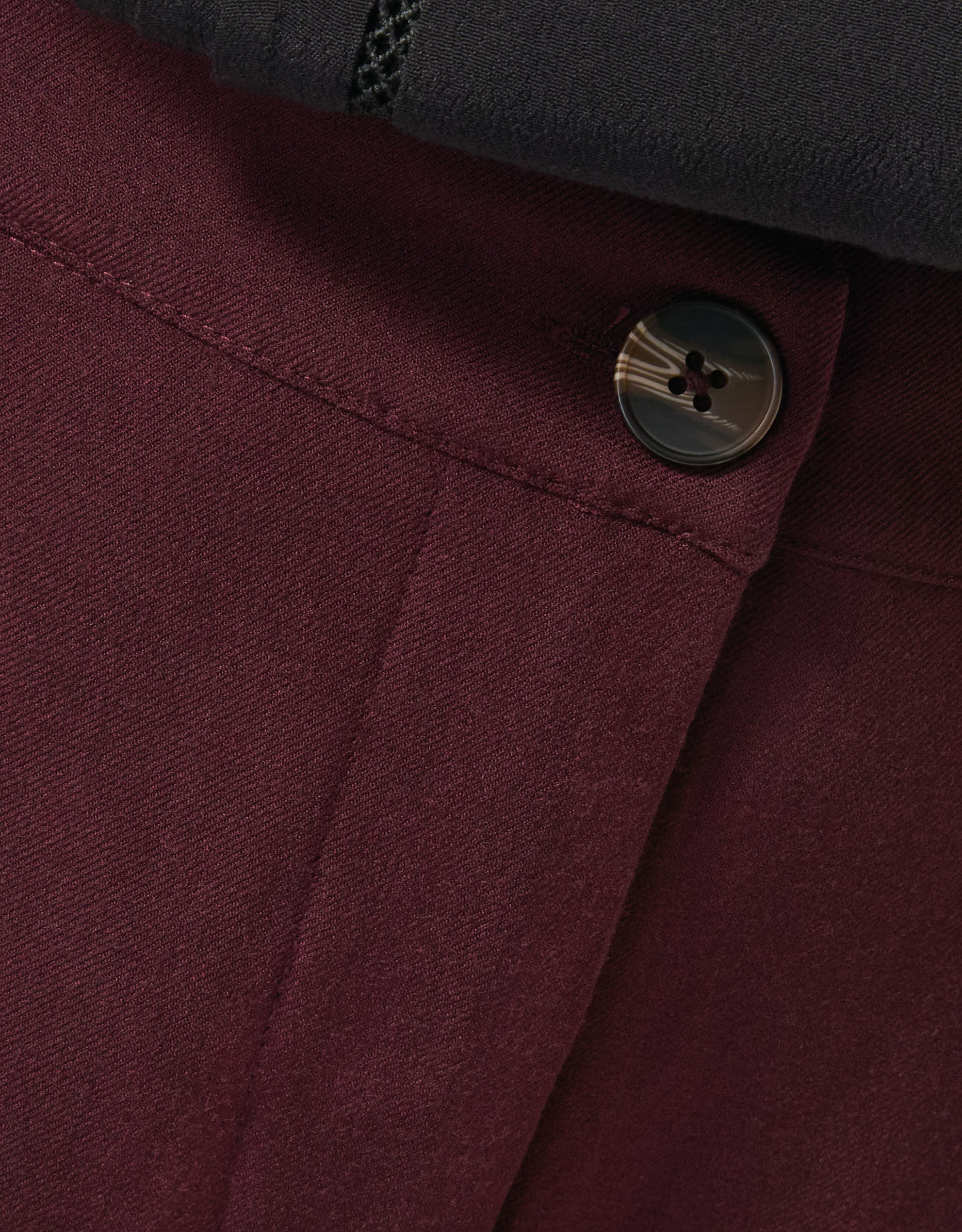 Berry chic. When it comes to effortlessly smart workwear, these will always make the cut. Slung high on the waist with a comfy stretch back band, these trousers boast a straight leg fit and cropped hems. Complete the look with a boxy shirt and leather loafers to match your everyday tote. Purple