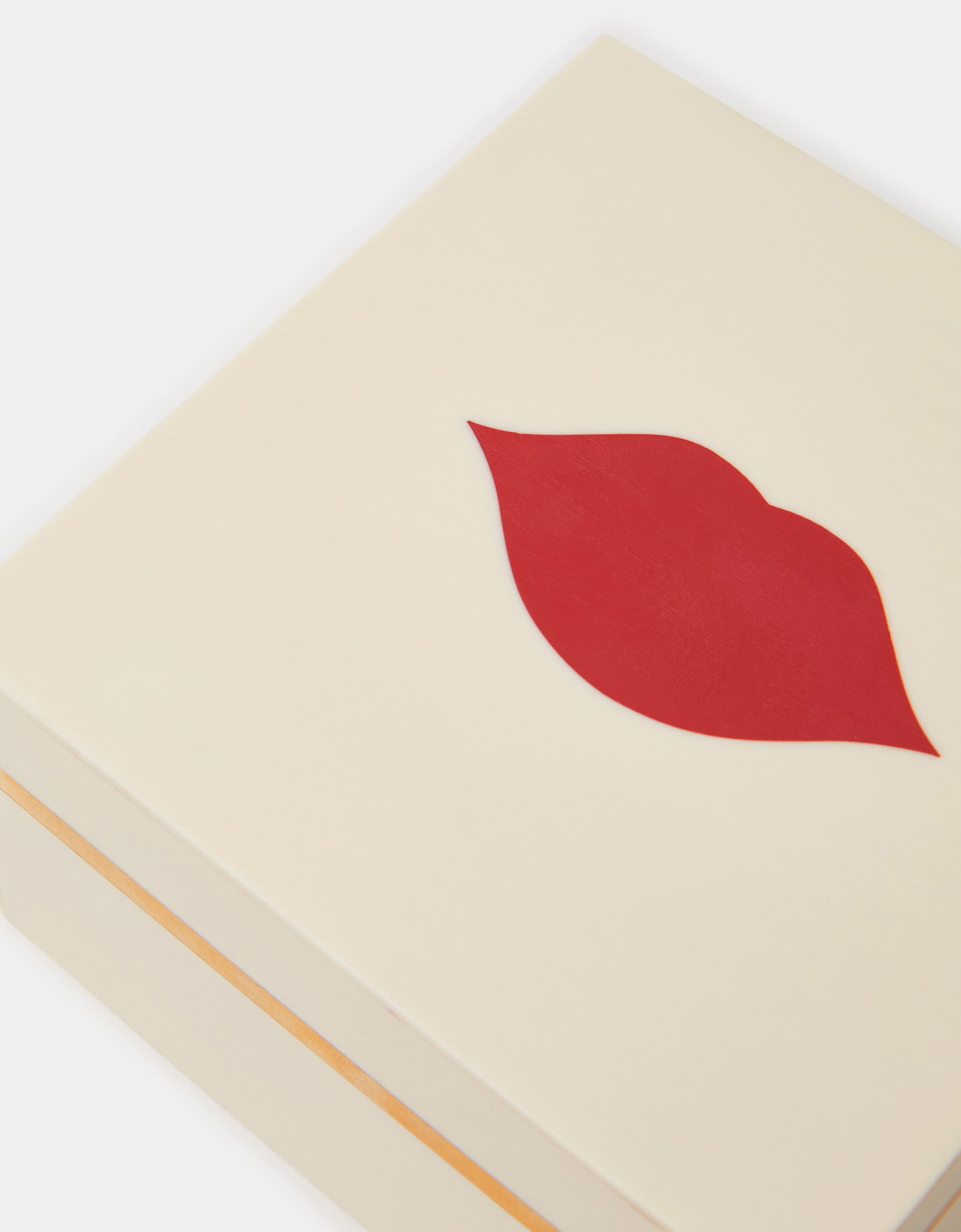 Made for storing all your favourite treasures and trinkets, this miniature jewellery box is decorated with a red lip motif and gold finish around the lid. Mwah!
