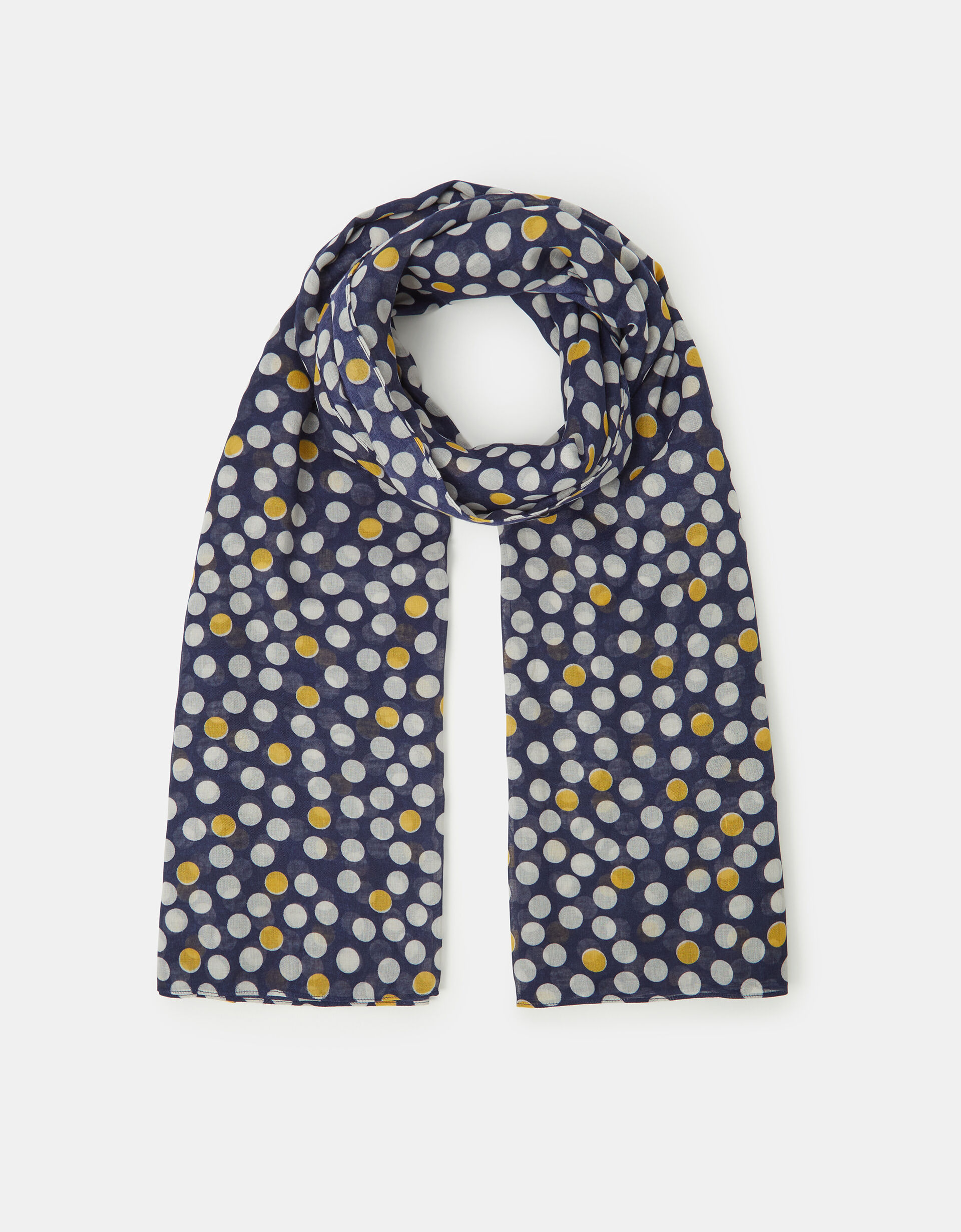 Tapping into everyone’s favourite print, this lightweight scarf has been patterned with polka dots, primed to level up any neutral ‘fit. Best styled around your neck with a cappuccino in hand.