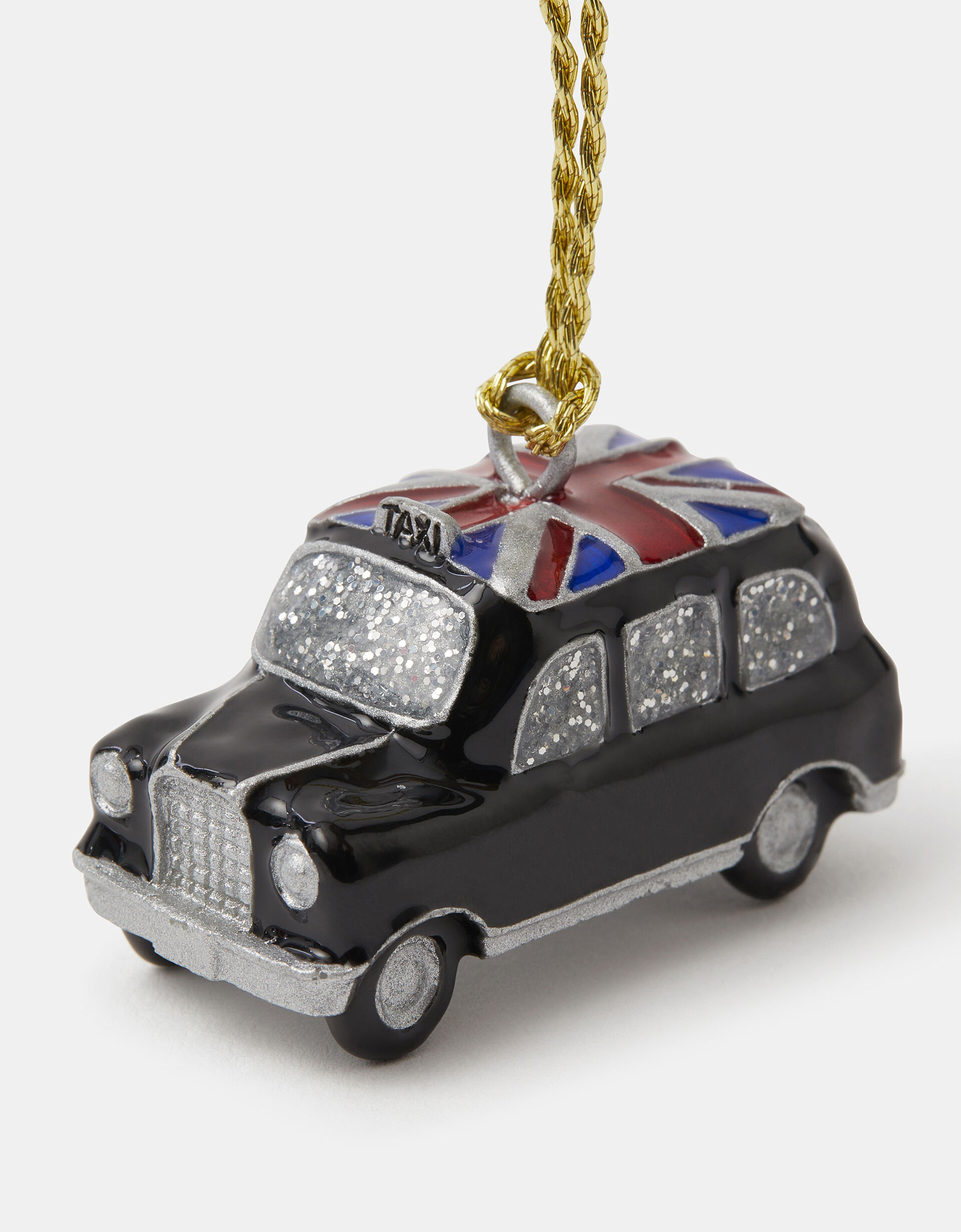 A great addition to hang on your Christmas tree for a London-inspired theme. This decoration features a black cab with a union jack design on the roof and glittery windows.