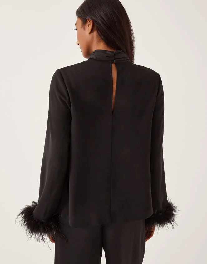 A little something up your sleeve. Designed with feathery, statement sleeves, this high-neck blouse will be your secret weapon for spontaneous nights out. Finished with a keyhole neckline for added elegance. Black