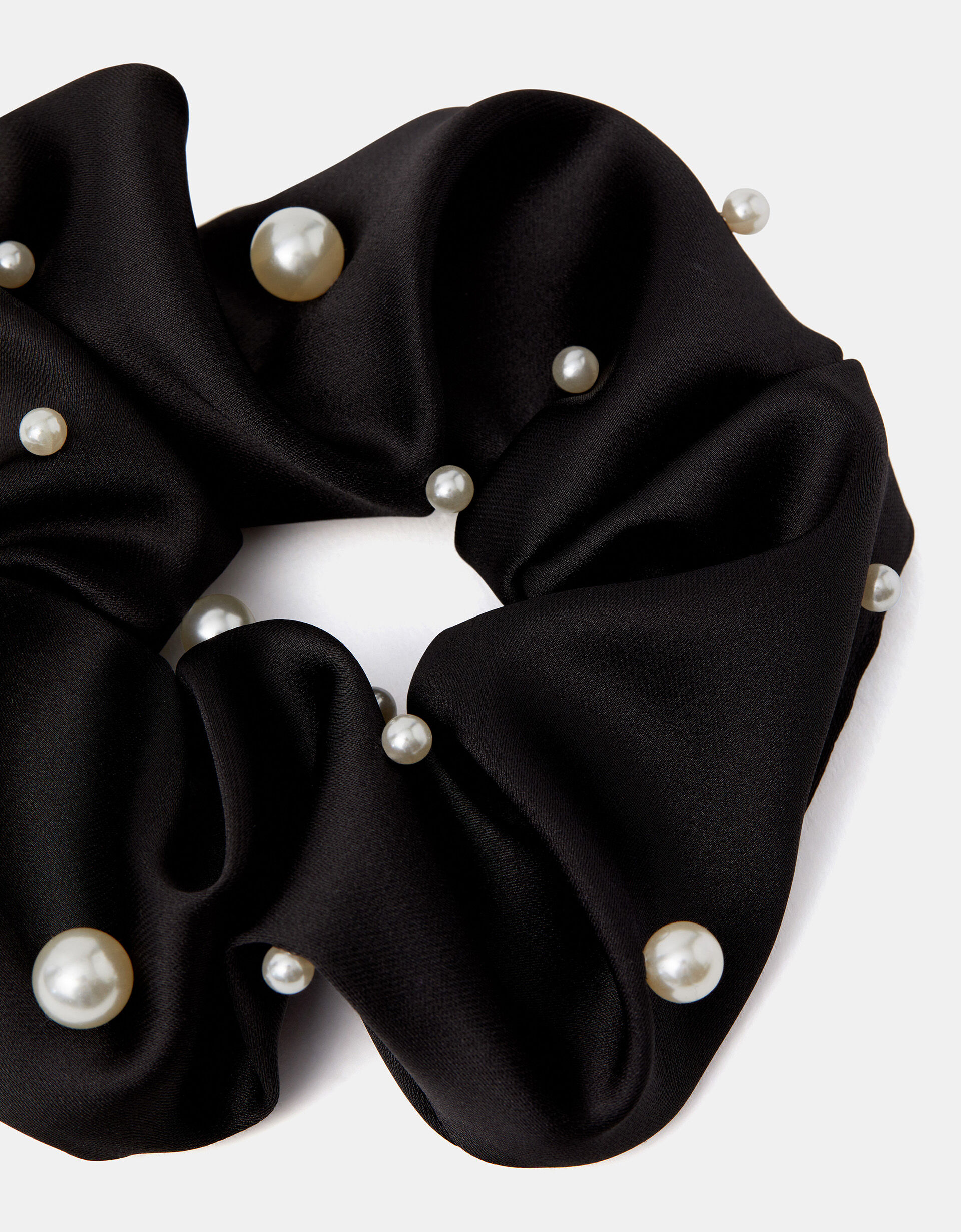 The classic scrunchie comes with an eye-catching upgrade. Made from soft, satin fabric, it’s decorated with pearly beads. Gorgeous, right?