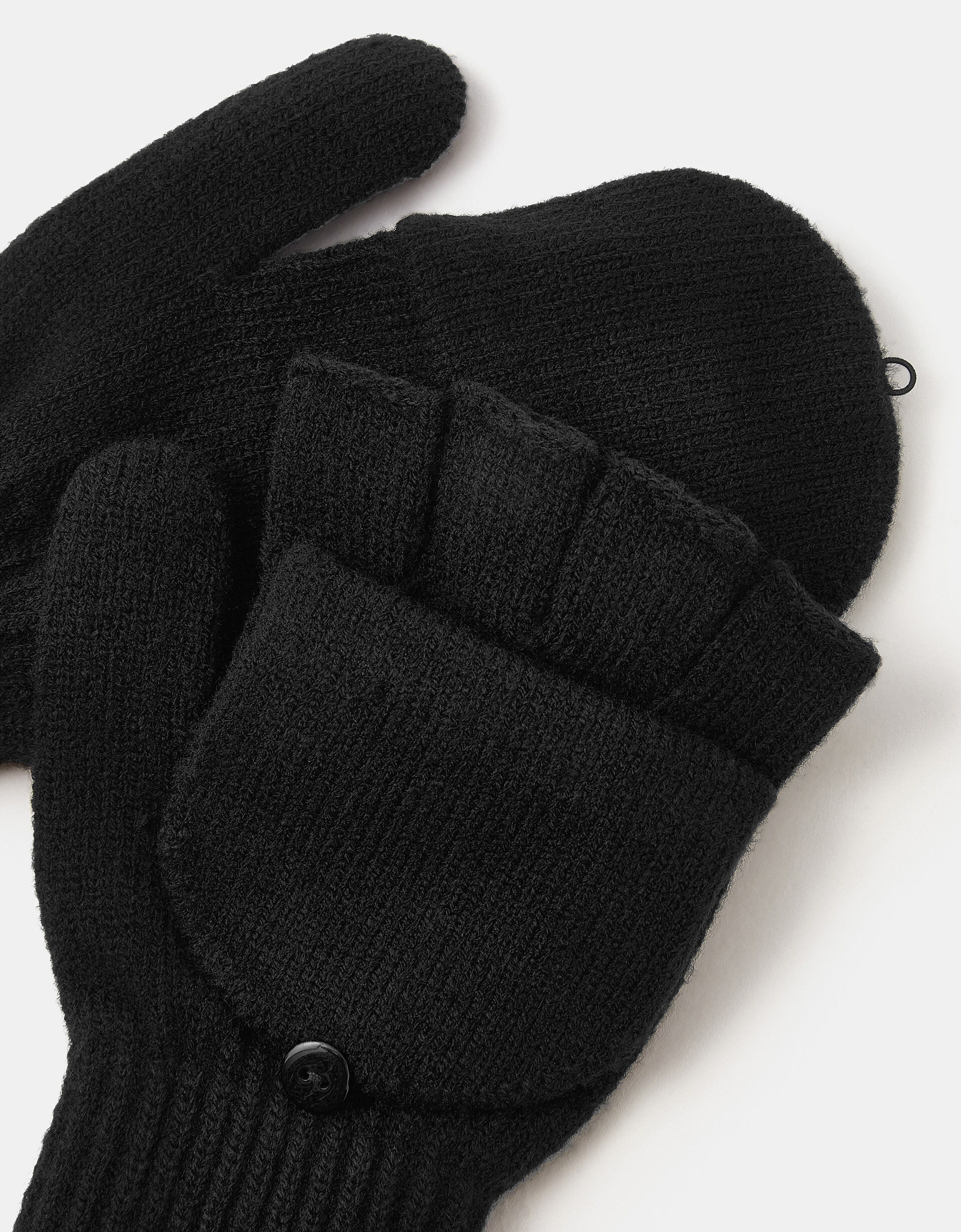 Simply soft: these capped gloves are a cold-weather essential. They feature individual holes for your fingers and thumbs and mittens that can be secured back with a single button. Designed in soft, knitted fabric to keep your hands warm and cosy.