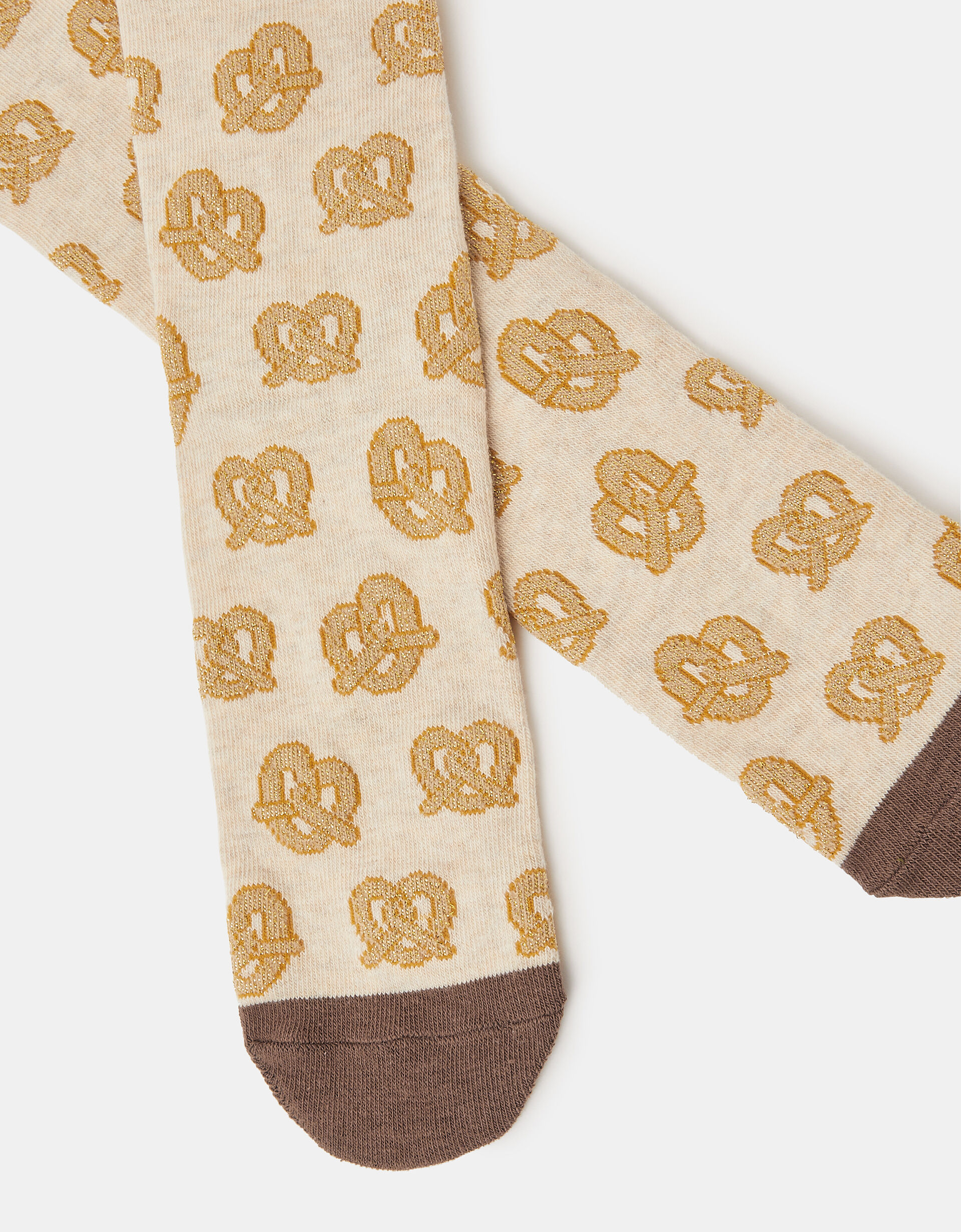 Stitched with glittery thread, these socks are completely covered with pretzels, making them a yummy addition to your collection. You know you want to…
