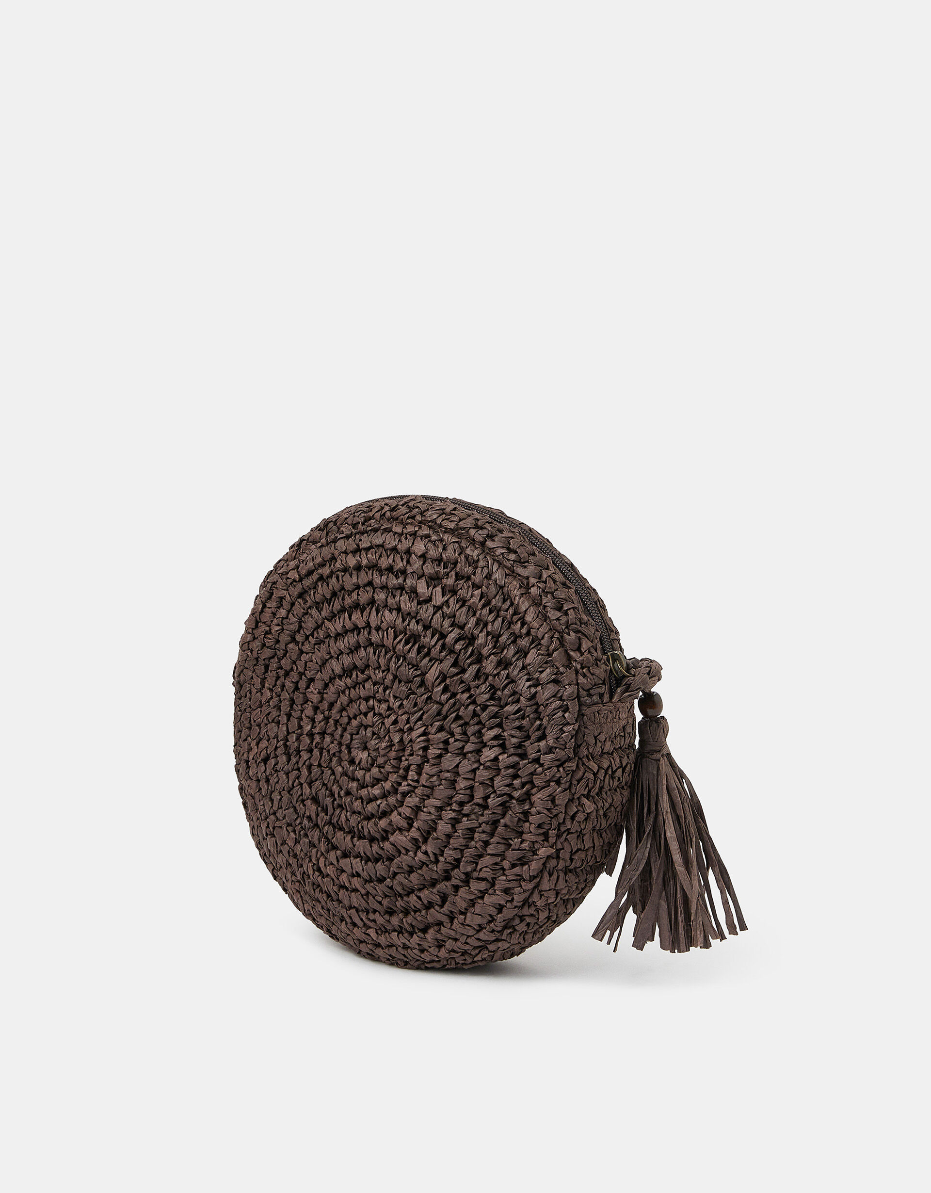 Is your summer look really complete without a raffia bag? Intricately woven in a circular profile, this crossbody bag is the perfect accessory to all your holiday ‘fits. Finished with a zip fastening and swishy tassel cord.