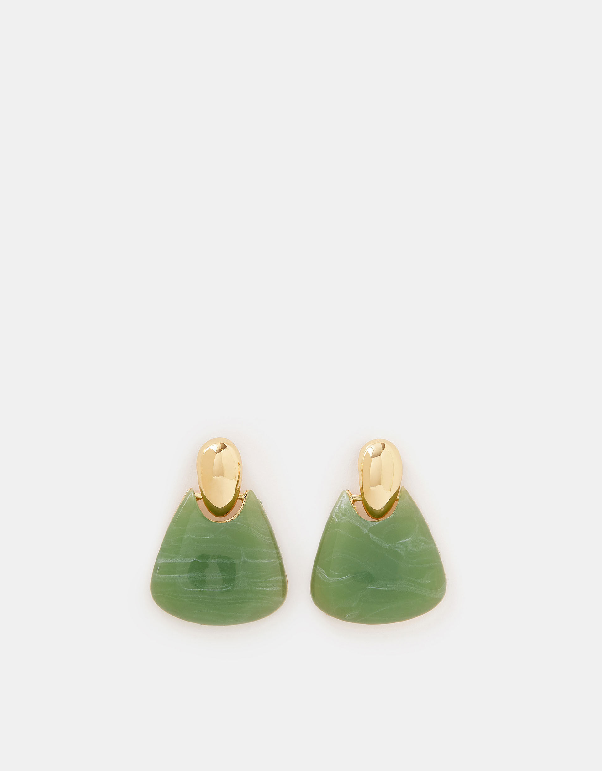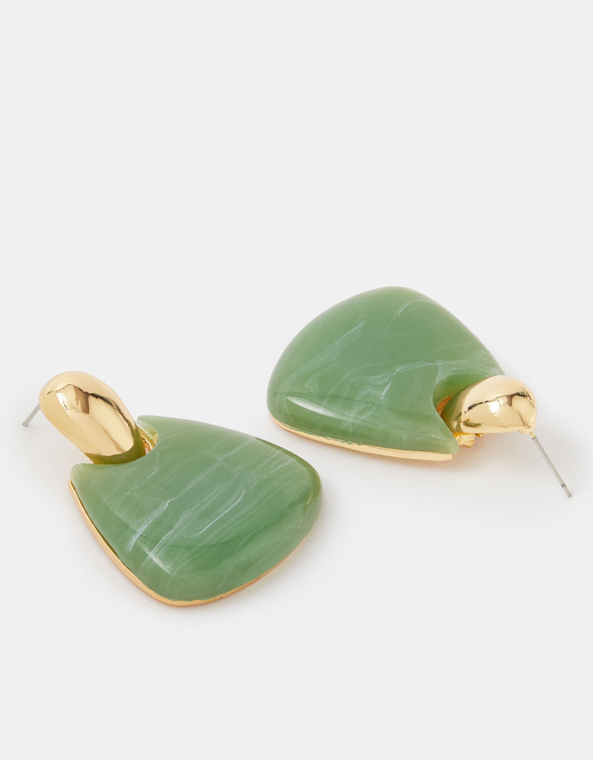 Knocking at the door, these resin earrings are here to make a statement. Hanging from a gold-tone tear drop, the sage green stone brings a pop of colour to your collection, making them the perfect pick for after-work plans. Non-refundable.